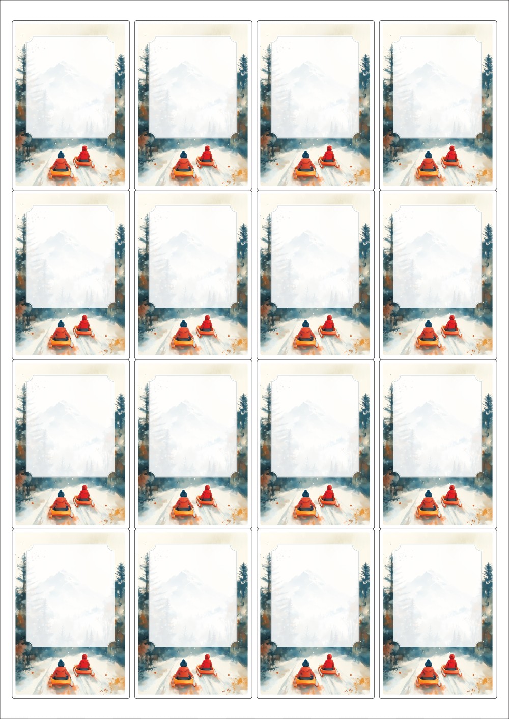 디자인된 A4 라벨지 출력용 라벨스티커, 규격코드: 244, 디자인코드: DA1495(겨울날의 동화, 그리고 즐거운 추억), 48.5 x 70 (mm)