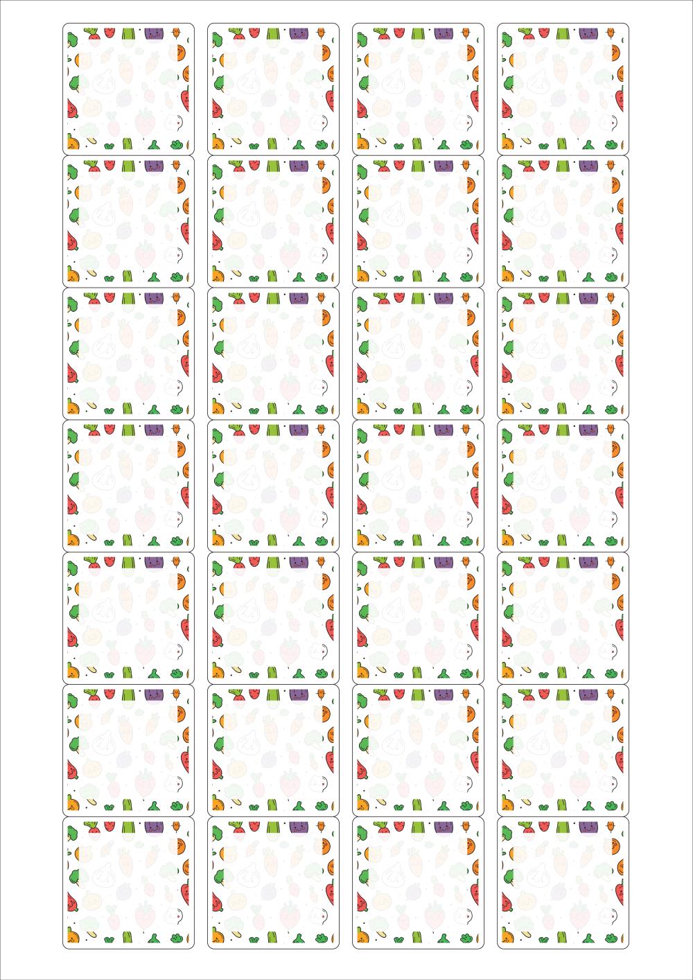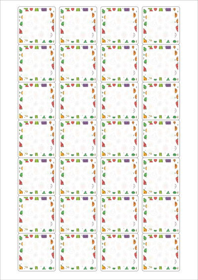 디자인된 A4 라벨지 출력용 라벨스티커, 규격코드: 247, 디자인코드: DA1376(건강한 야채 이야기), 39.9 x 40.08 (mm)
