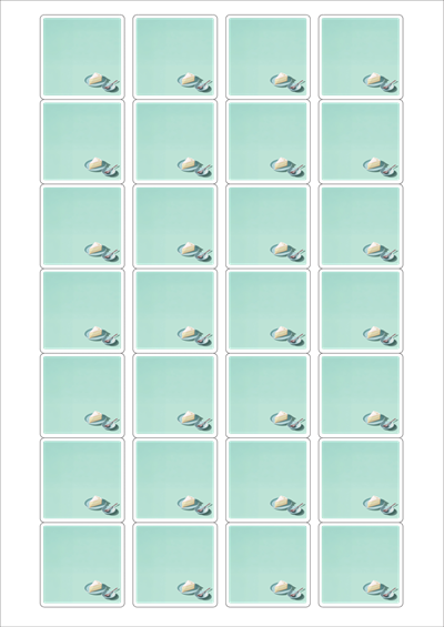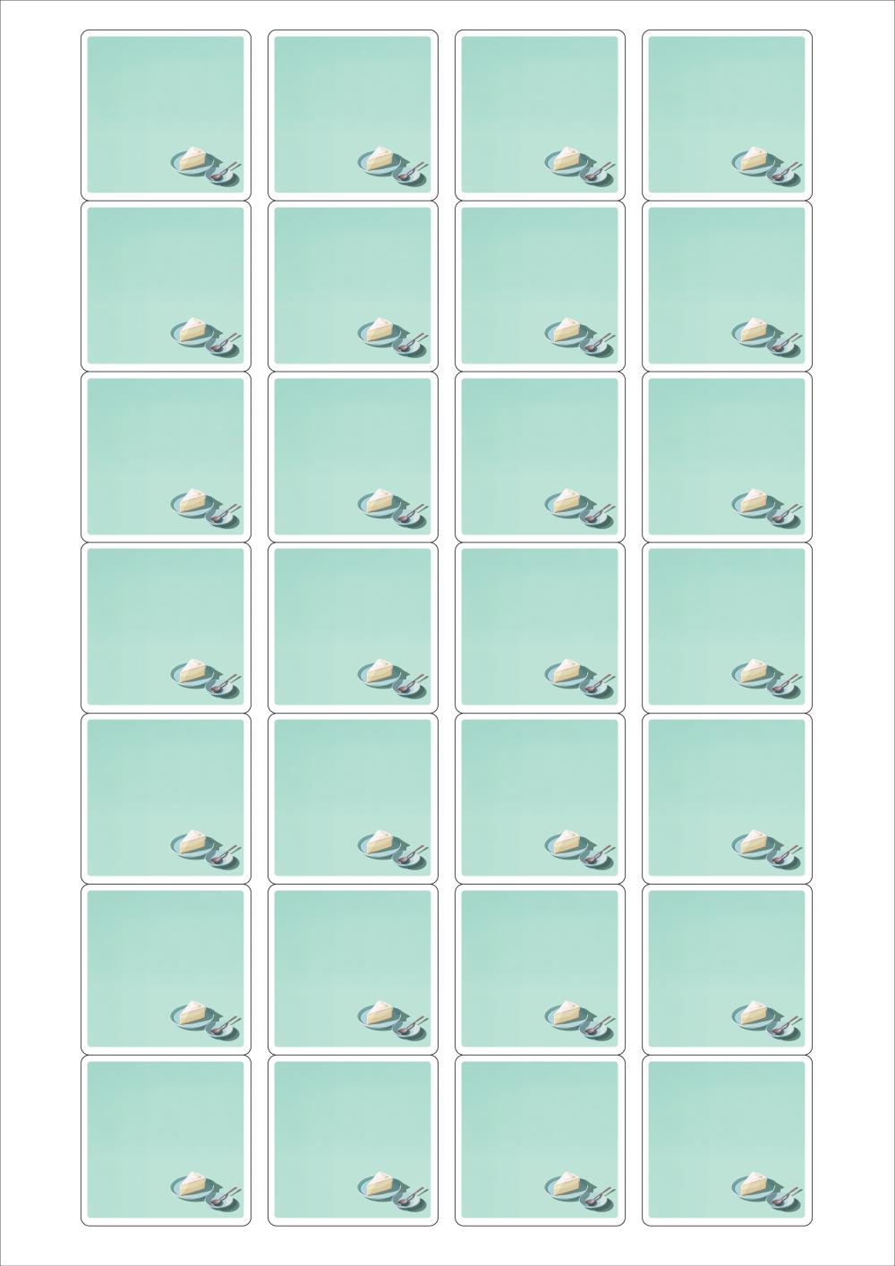디자인된 A4 라벨지 출력용 라벨스티커, 규격코드: 247, 디자인코드: DA1385(민초파?), 39.9 x 40.08 (mm)