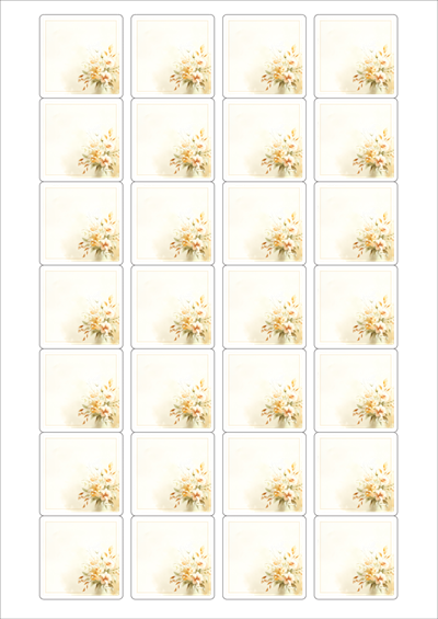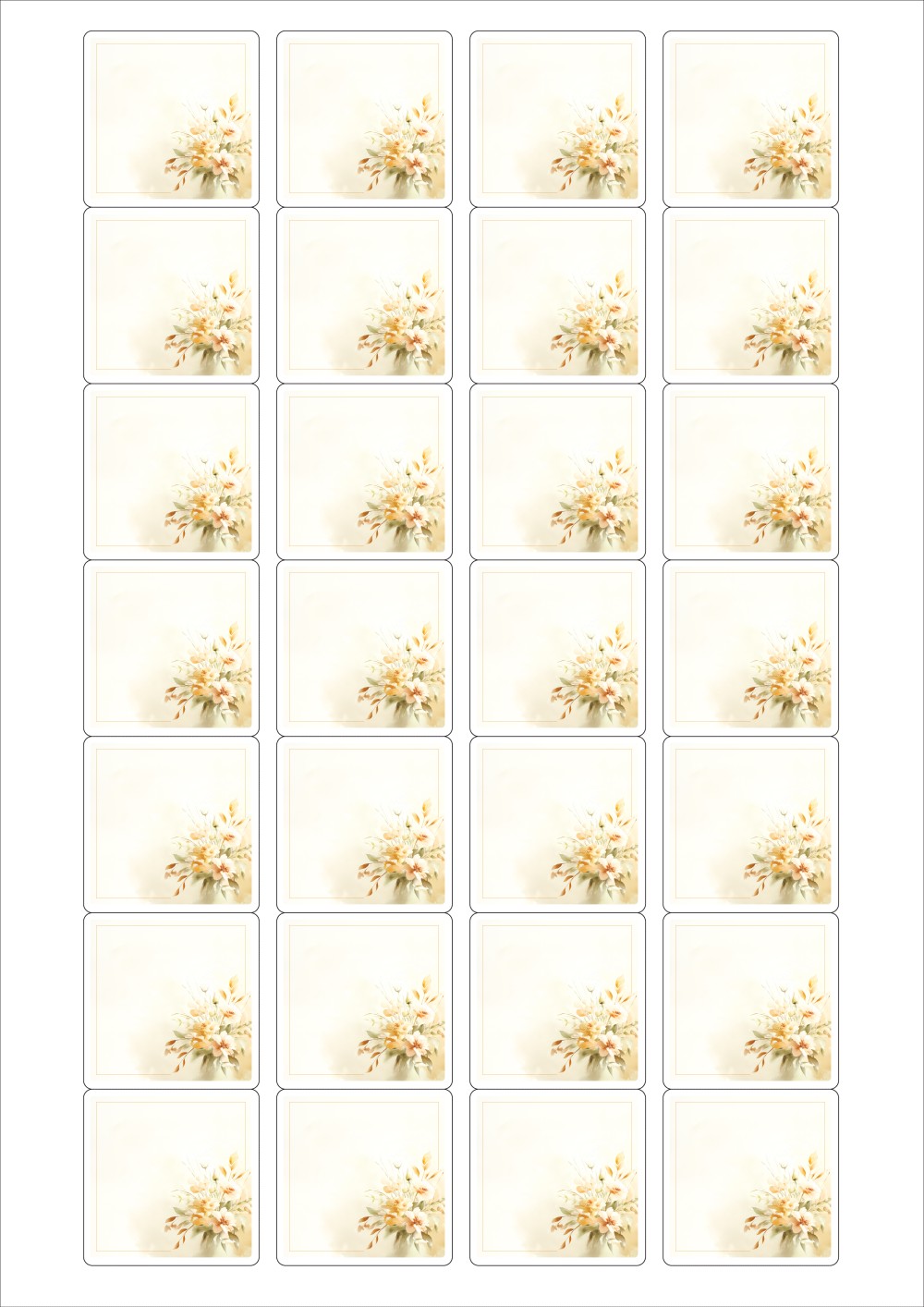 디자인된 A4 라벨지 출력용 라벨스티커, 규격코드: 247, 디자인코드: DA1422(감사의 메세지), 39.9 x 40.08 (mm)