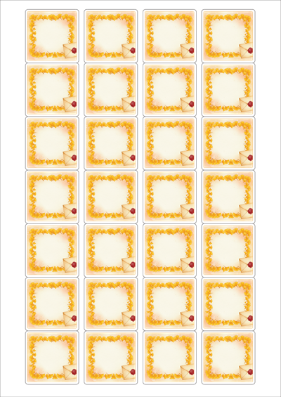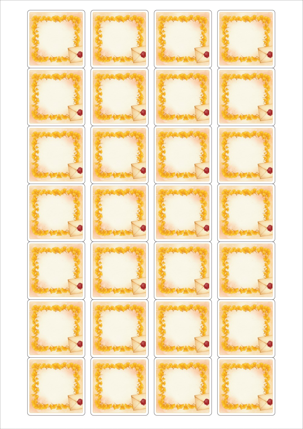 디자인된 A4 라벨지 출력용 라벨스티커, 규격코드: 247, 디자인코드: DA1426(은행잎 편지), 39.9 x 40.08 (mm)