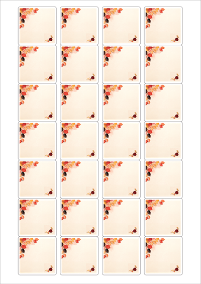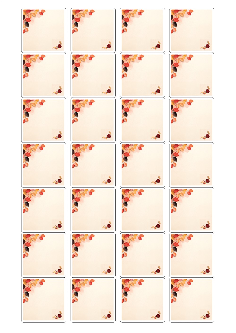 디자인된 A4 라벨지 출력용 라벨스티커, 규격코드: 247, 디자인코드: DA1428(가을날의 메세지1), 39.9 x 40.08 (mm)