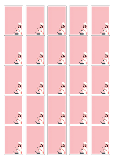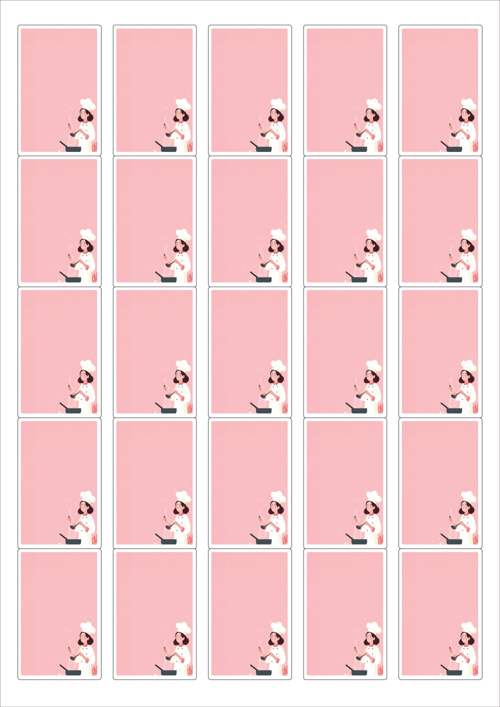 디자인된 A4 라벨지 출력용 라벨스티커, 규격코드: 255, 디자인코드: DA1434(요리교실 오픈했어요), 35 x 55 (mm)