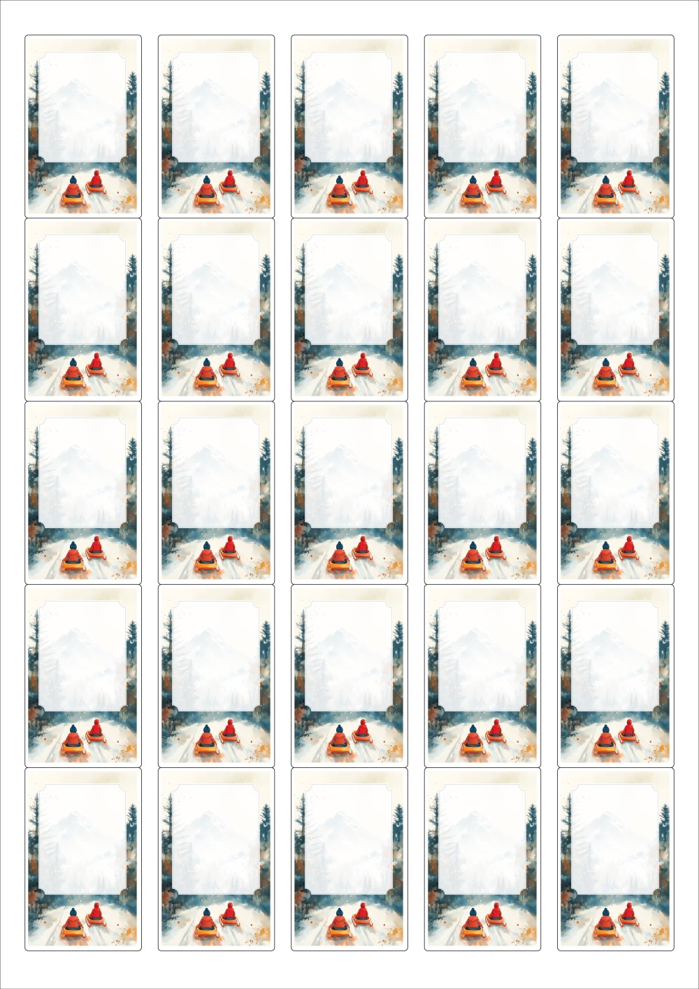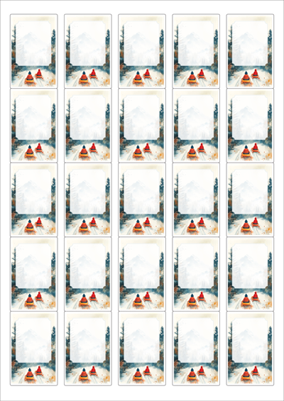 디자인된 A4 라벨지 출력용 라벨스티커, 규격코드: 255, 디자인코드: DA1495(겨울날의 동화, 그리고 즐거운 추억), 35 x 55 (mm)