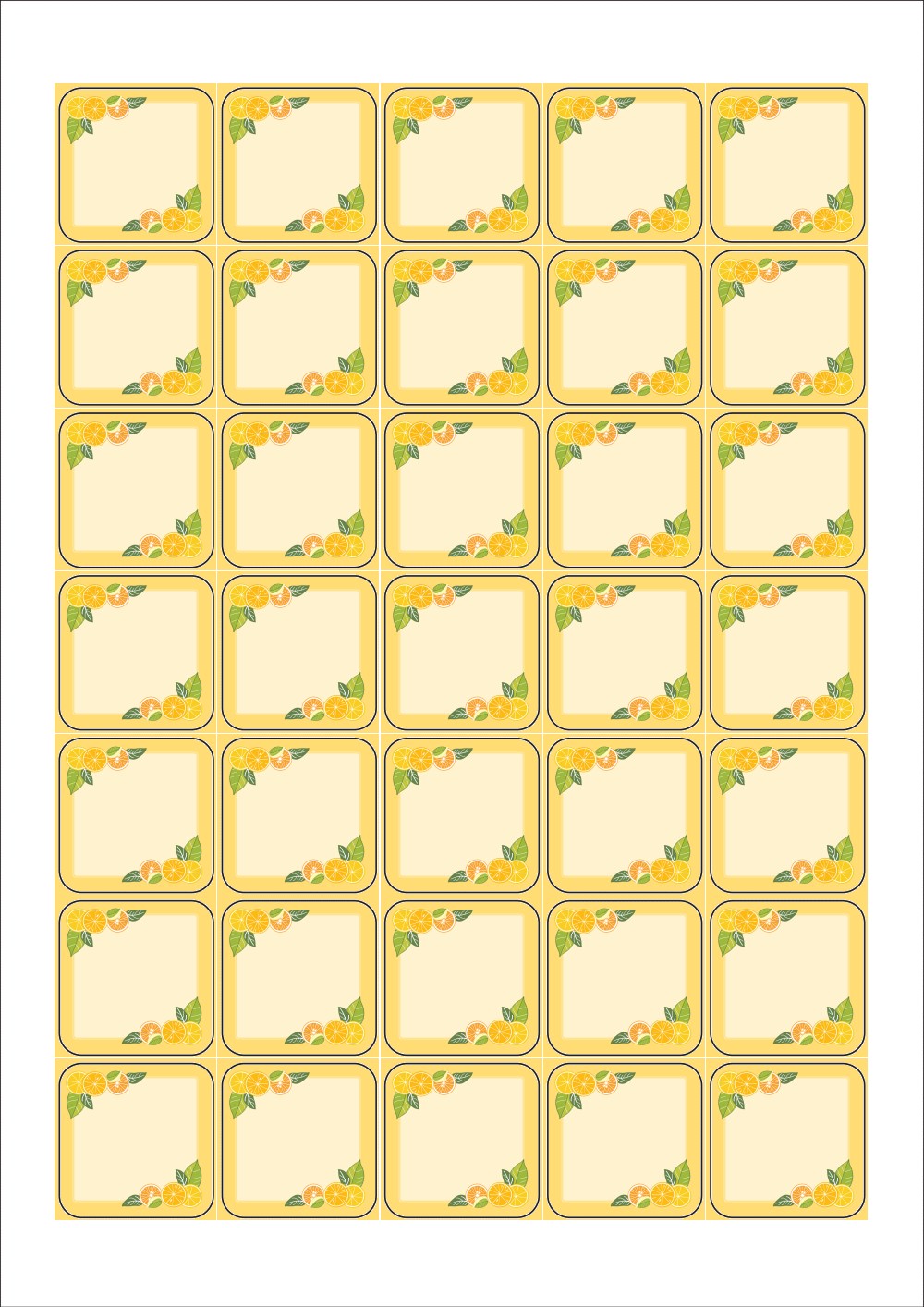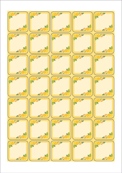 디자인된 A4 라벨지 출력용 라벨스티커, 규격코드: 257, 디자인코드: DA1417(상큼한 레몬 메세지), 35 x 35 (mm)