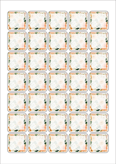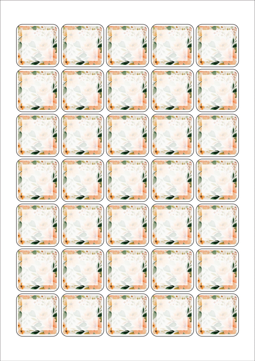 디자인된 A4 라벨지 출력용 라벨스티커, 규격코드: 257, 디자인코드: DA1420(꽃무늬 포장지1), 35 x 35 (mm)