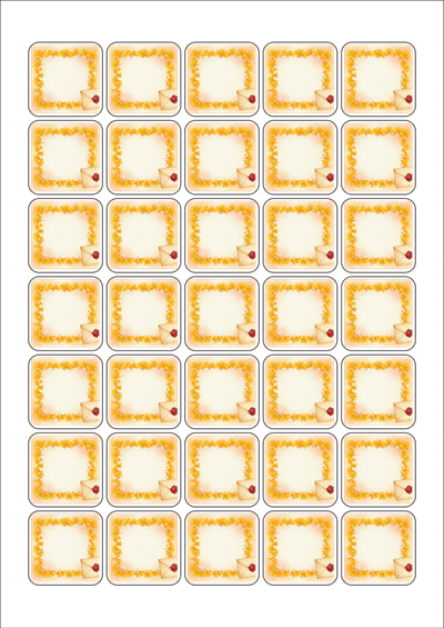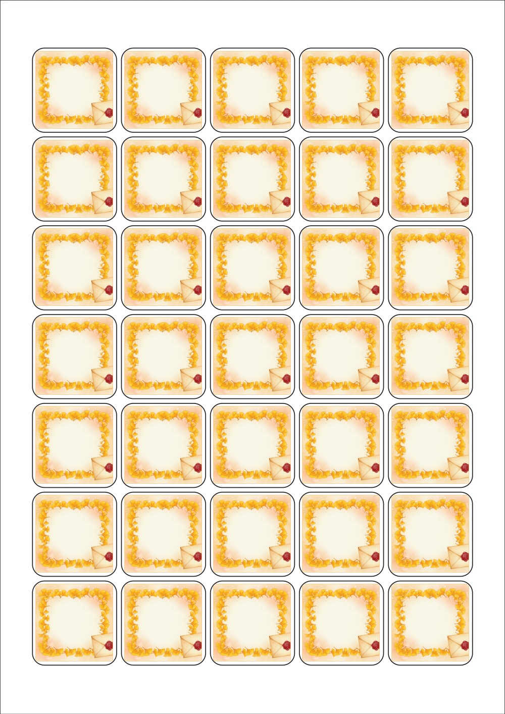 디자인된 A4 라벨지 출력용 라벨스티커, 규격코드: 257, 디자인코드: DA1426(은행잎 편지), 35 x 35 (mm)