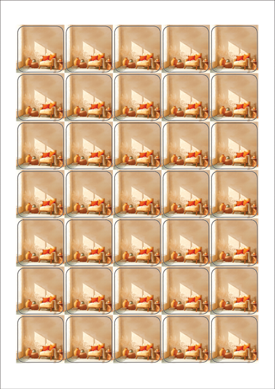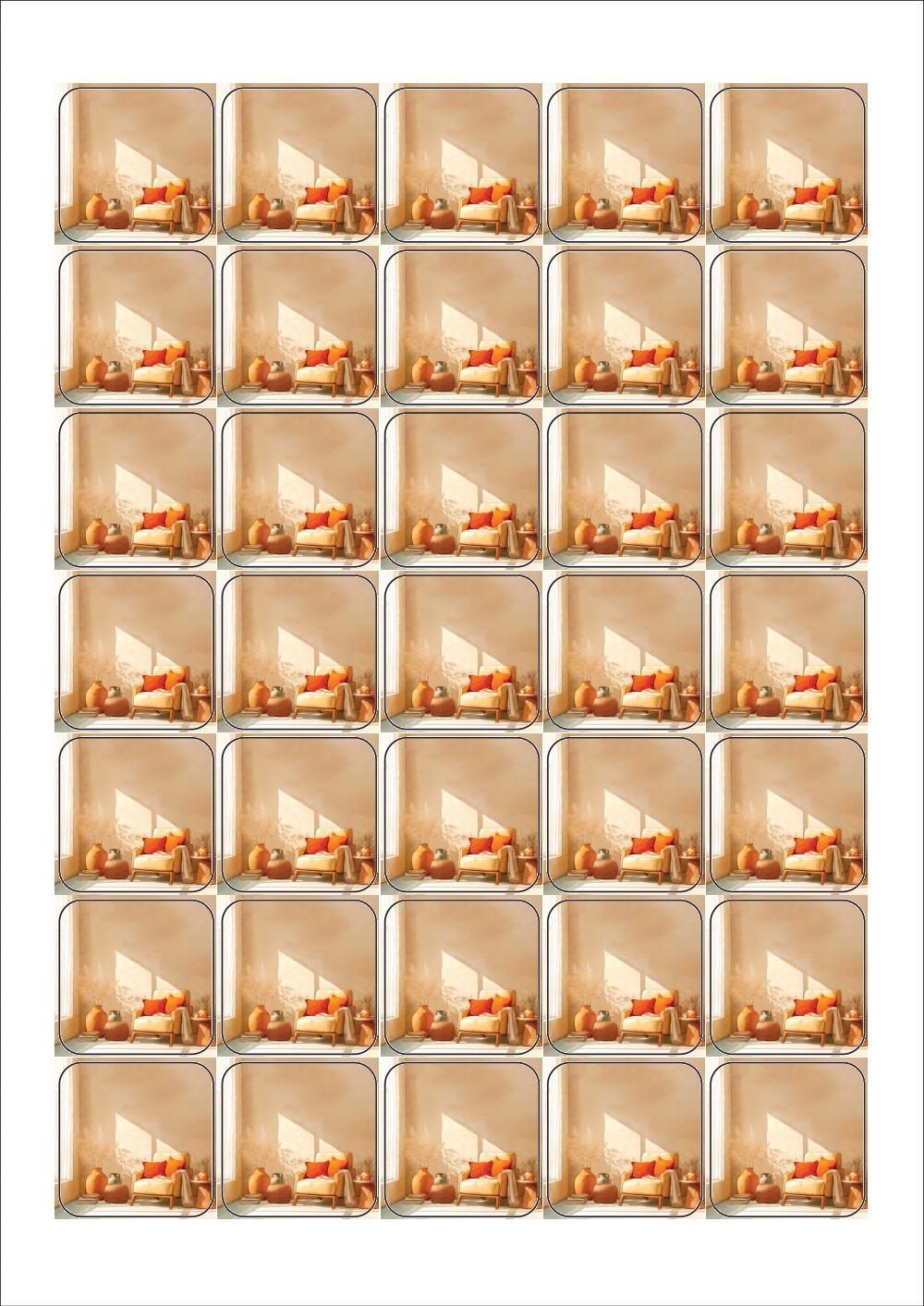 디자인된 A4 라벨지 출력용 라벨스티커, 규격코드: 257, 디자인코드: DA1436(아늑한 어느날 오후의 풍경), 35 x 35 (mm)