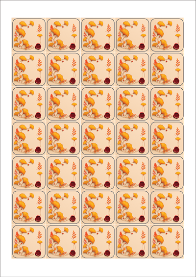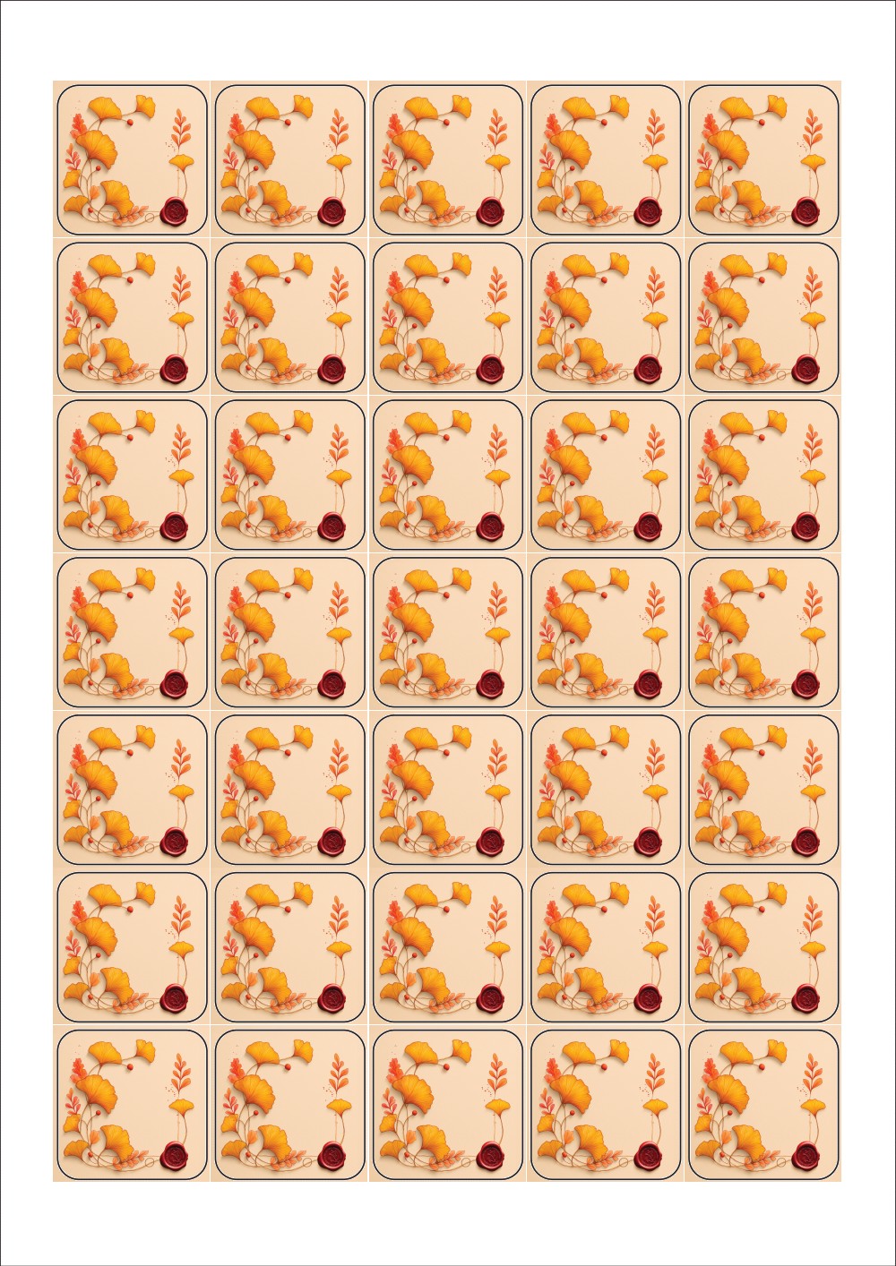 디자인된 A4 라벨지 출력용 라벨스티커, 규격코드: 257, 디자인코드: DA1437(은행잎 메모), 35 x 35 (mm)