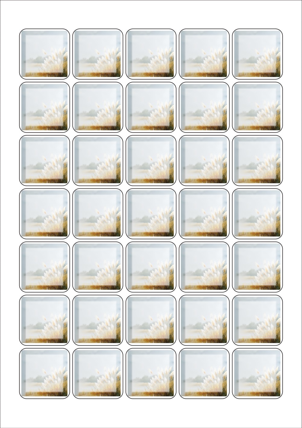 디자인된 A4 라벨지 출력용 라벨스티커, 규격코드: 257, 디자인코드: DA1449(가을 여행 2), 35 x 35 (mm)