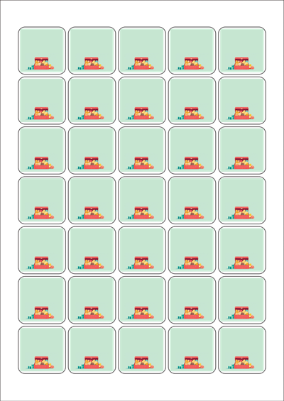디자인된 A4 라벨지 출력용 라벨스티커, 규격코드: 257, 디자인코드: DA1478(크리스마스 아침에 선물을 받다.), 35 x 35 (mm)