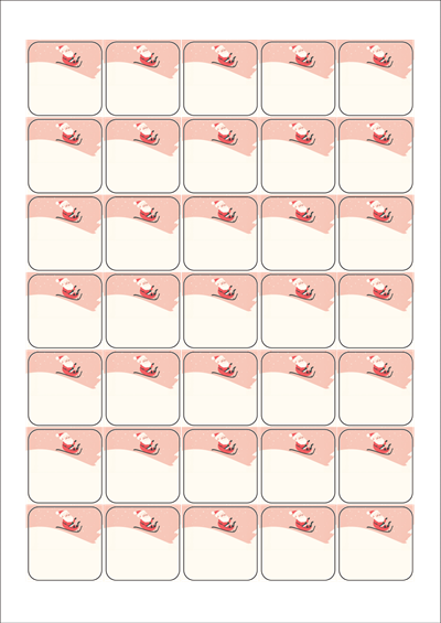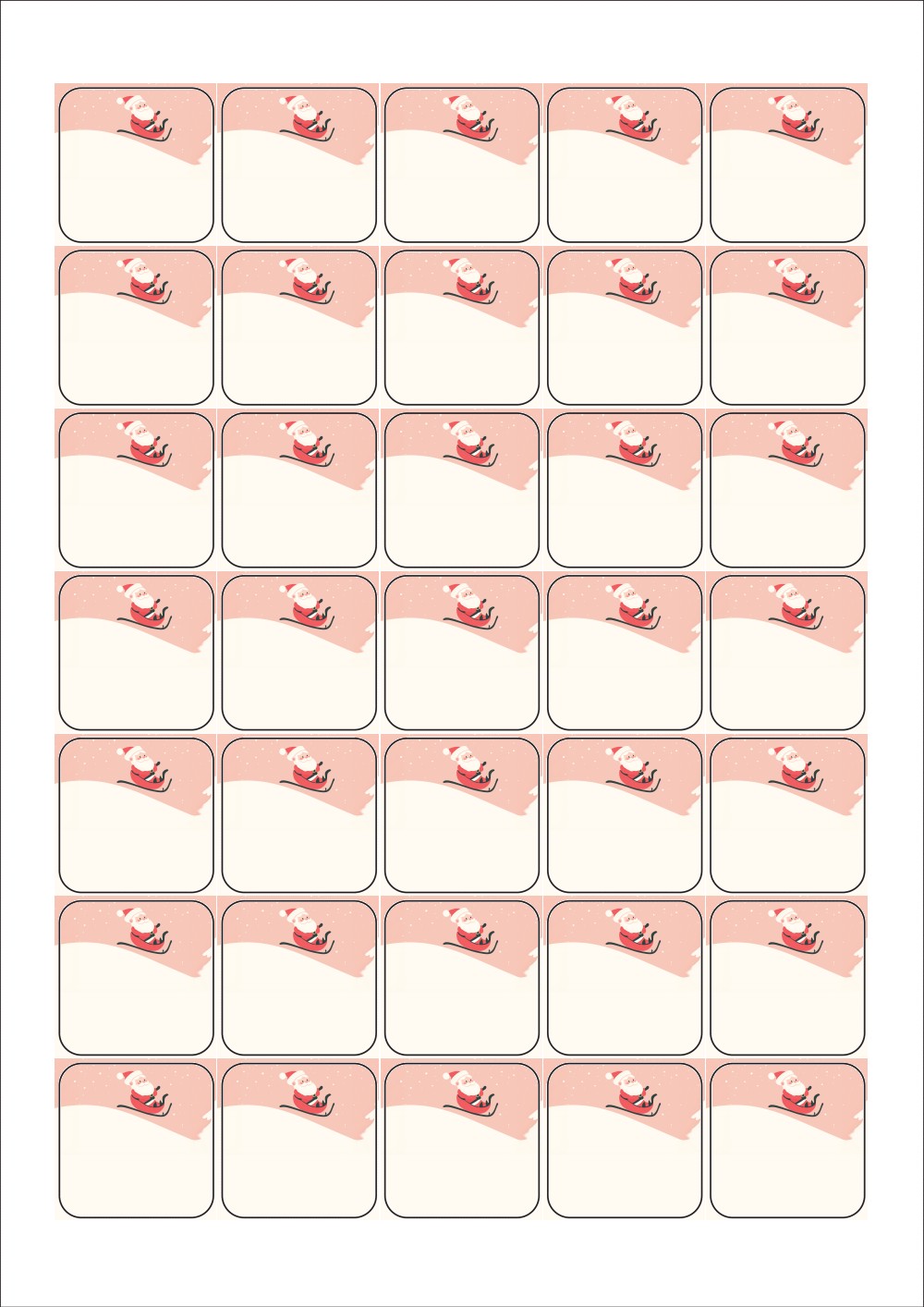디자인된 A4 라벨지 출력용 라벨스티커, 규격코드: 257, 디자인코드: DA1482(산타 신난다), 35 x 35 (mm)