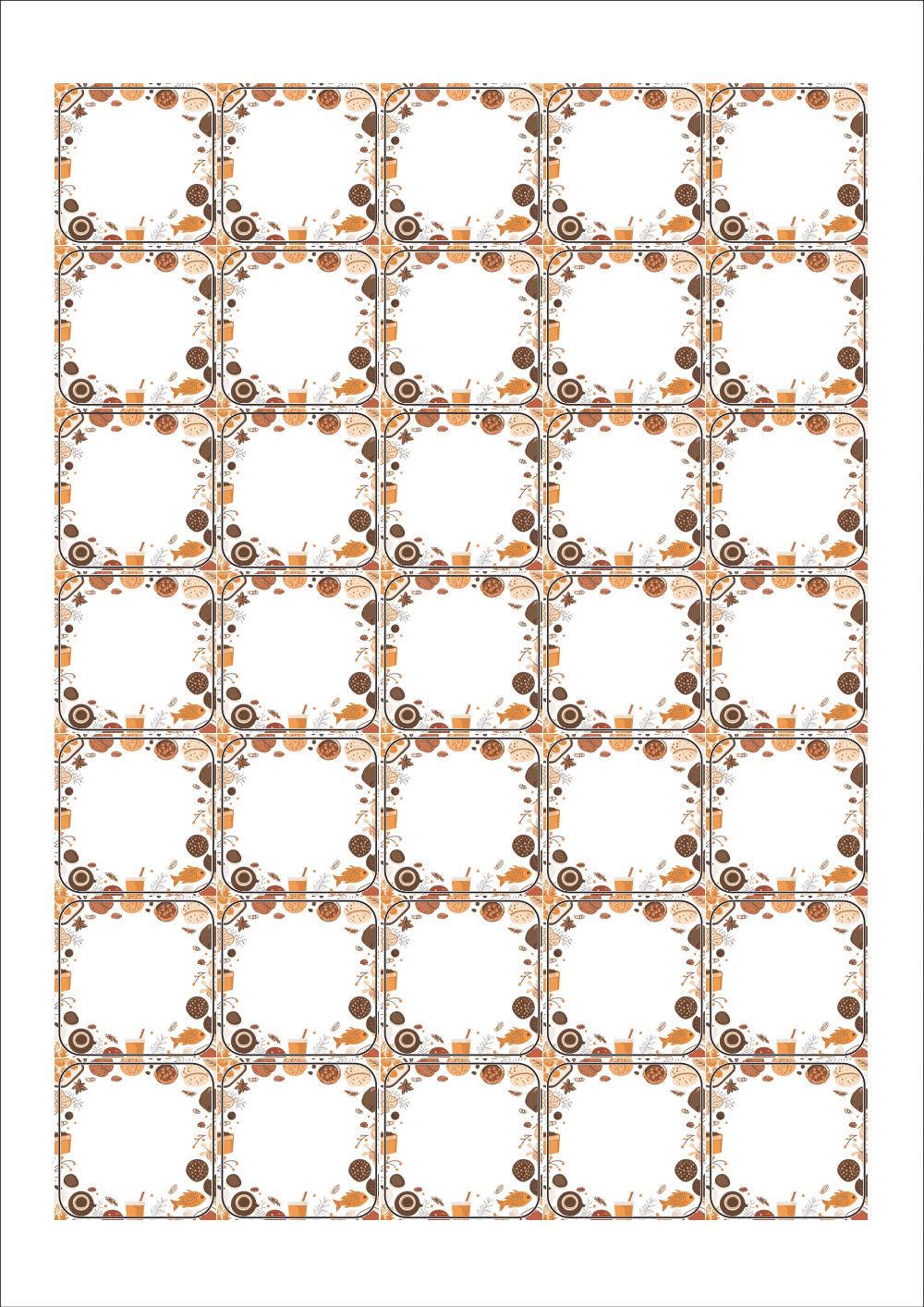 디자인된 A4 라벨지 출력용 라벨스티커, 규격코드: 257, 디자인코드: DA1515(달콤한 겨울빵 프레임), 35 x 35 (mm)