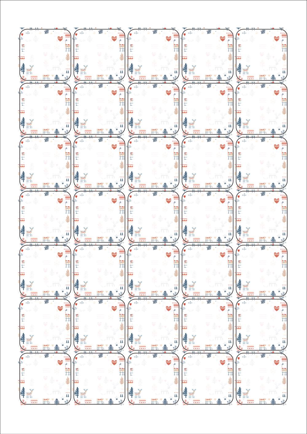 디자인된 A4 라벨지 출력용 라벨스티커, 규격코드: 257, 디자인코드: DA1526(겨울숲 여행 함께해요), 35 x 35 (mm)
