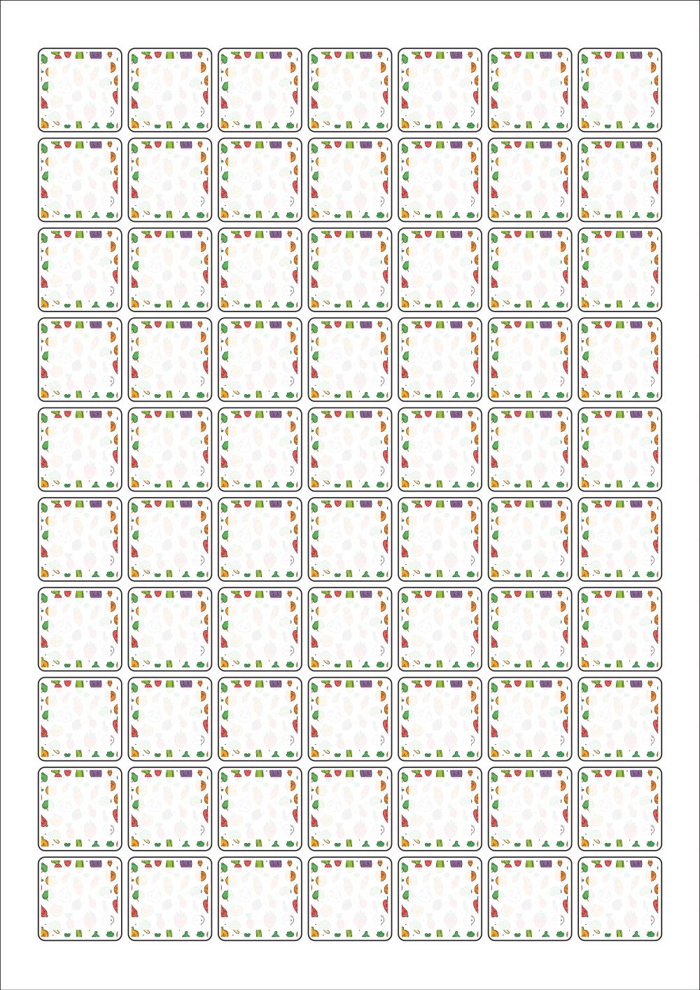 디자인된 A4 라벨지 출력용 라벨스티커, 규격코드: 270, 디자인코드: DA1376(건강한 야채 이야기), 25 x 25 (mm)