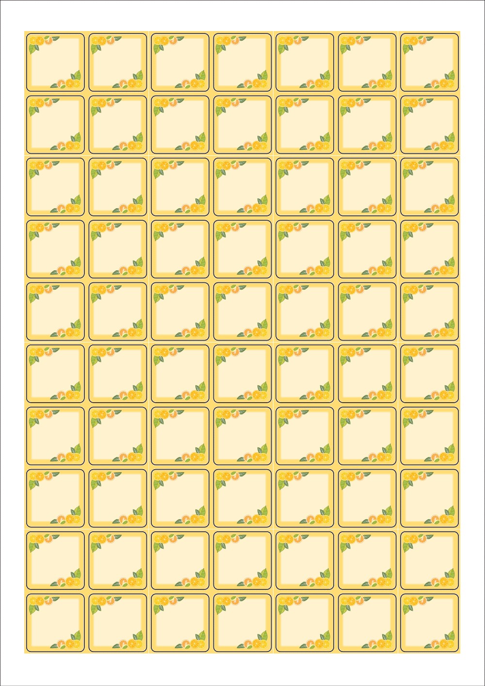 디자인된 A4 라벨지 출력용 라벨스티커, 규격코드: 270, 디자인코드: DA1417(상큼한 레몬 메세지), 25 x 25 (mm)
