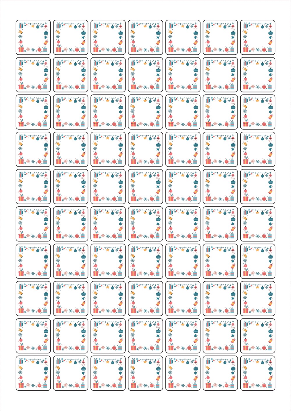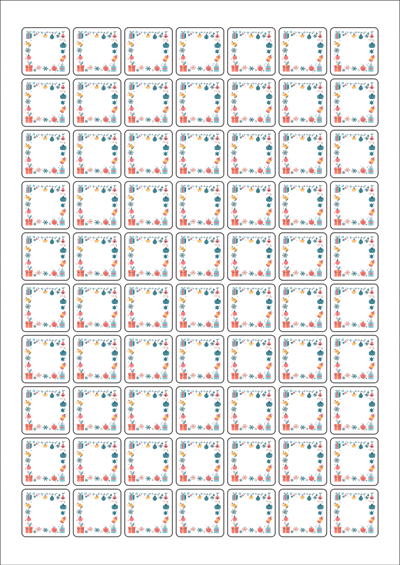 디자인된 A4 라벨지 출력용 라벨스티커, 규격코드: 270, 디자인코드: DA1458(크리스마스를 장식해요), 25 x 25 (mm)