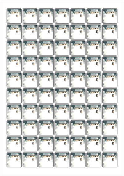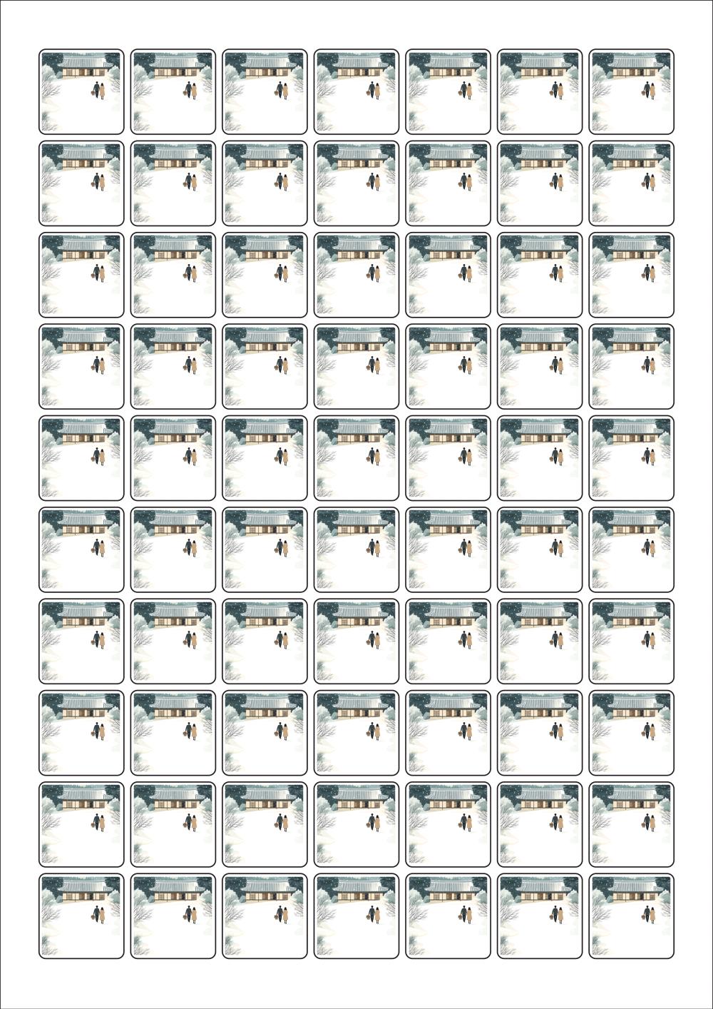 디자인된 A4 라벨지 출력용 라벨스티커, 규격코드: 270, 디자인코드: DA1580(눈내린 귀향의 따뜻한 길), 25 x 25 (mm)