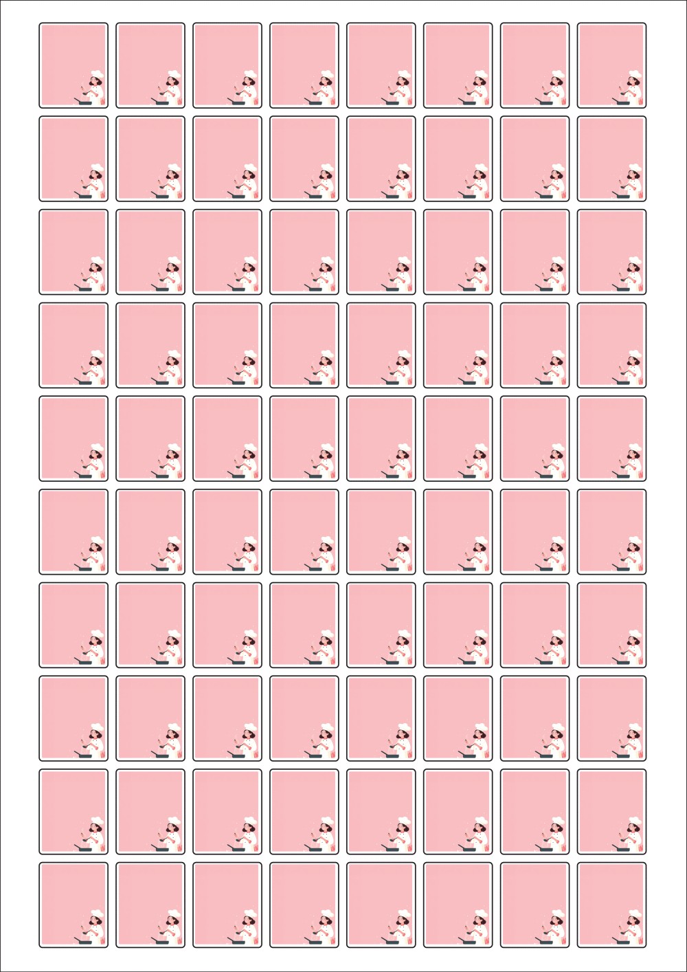 디자인된 A4 라벨지 출력용 라벨스티커, 규격코드: 280, 디자인코드: DA1434(요리교실 오픈했어요), 21 x 26 (mm)