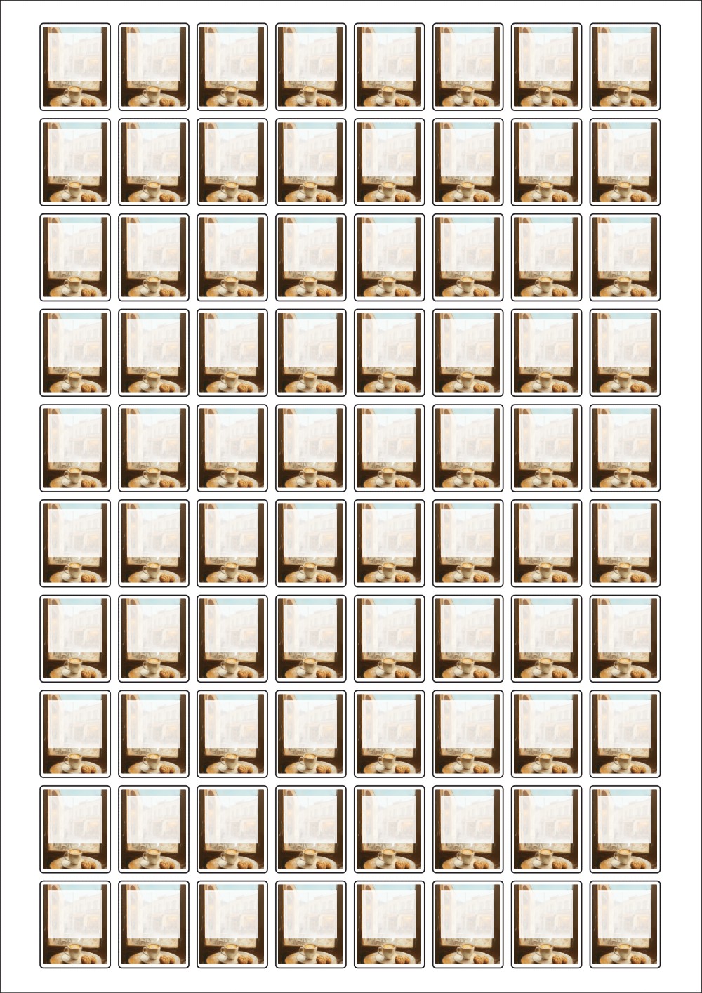 디자인된 A4 라벨지 출력용 라벨스티커, 규격코드: 280, 디자인코드: DA1479(레트로 감성 카페에서), 21 x 26 (mm)