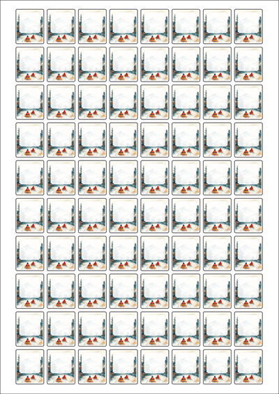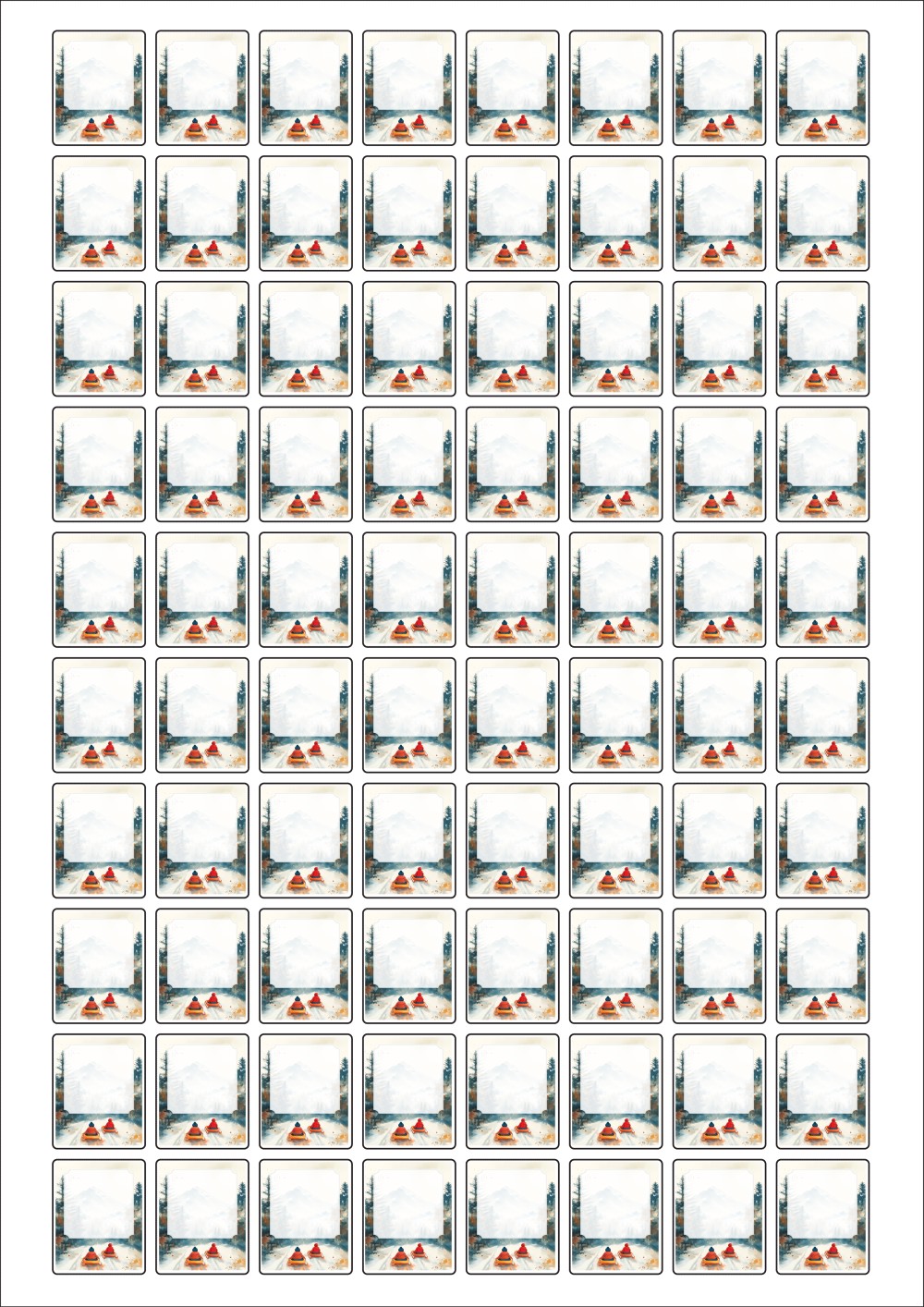 디자인된 A4 라벨지 출력용 라벨스티커, 규격코드: 280, 디자인코드: DA1495(겨울날의 동화, 그리고 즐거운 추억), 21 x 26 (mm)