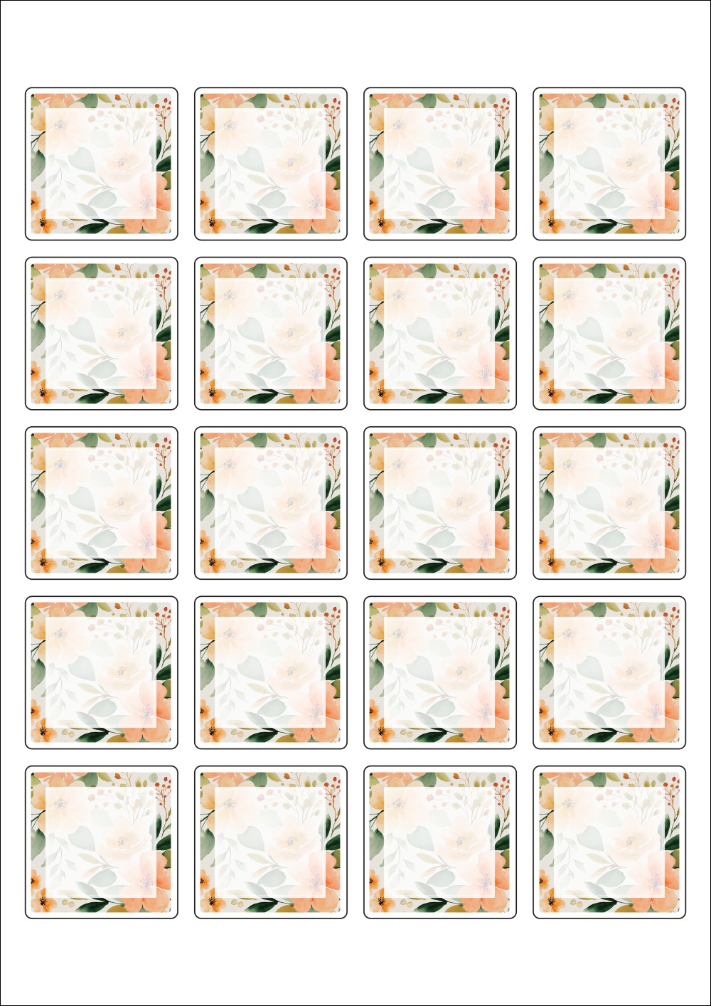 디자인된 A4 라벨지 출력용 라벨스티커, 규격코드: 420, 디자인코드: DA1420(꽃무늬 포장지1), 45 x 45 (mm)