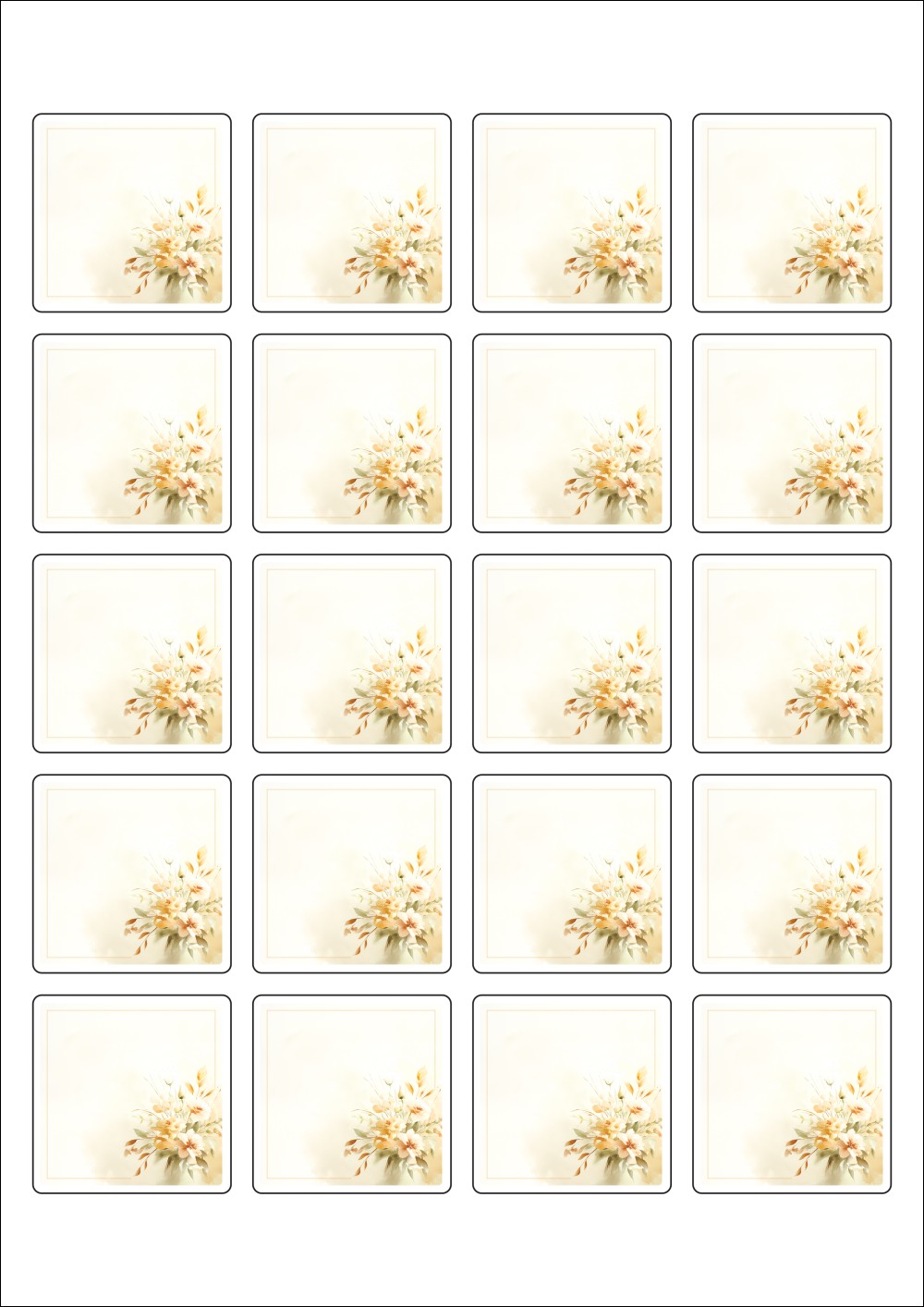 디자인된 A4 라벨지 출력용 라벨스티커, 규격코드: 420, 디자인코드: DA1422(감사의 메세지), 45 x 45 (mm)