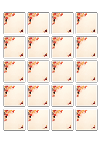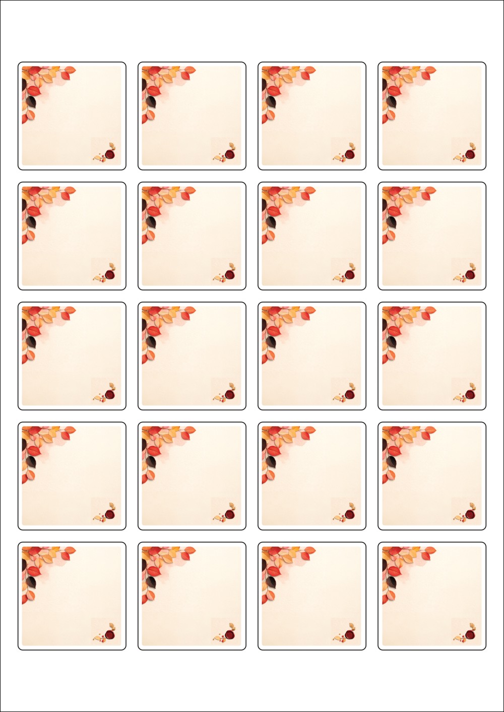 디자인된 A4 라벨지 출력용 라벨스티커, 규격코드: 420, 디자인코드: DA1428(가을날의 메세지1), 45 x 45 (mm)