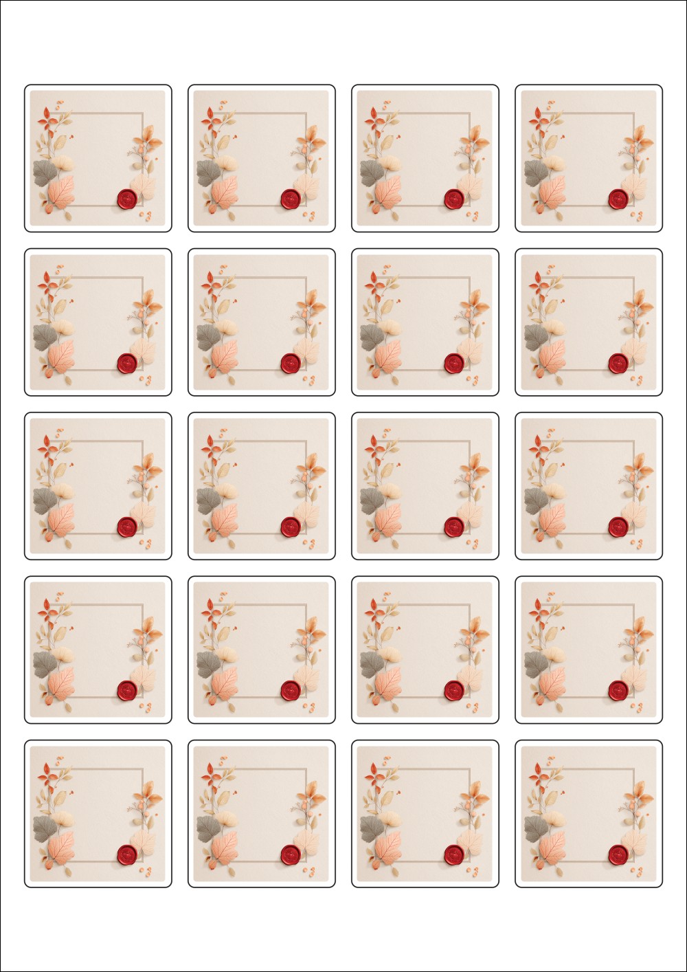 디자인된 A4 라벨지 출력용 라벨스티커, 규격코드: 420, 디자인코드: DA1429(가을날의 메세지2), 45 x 45 (mm)
