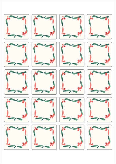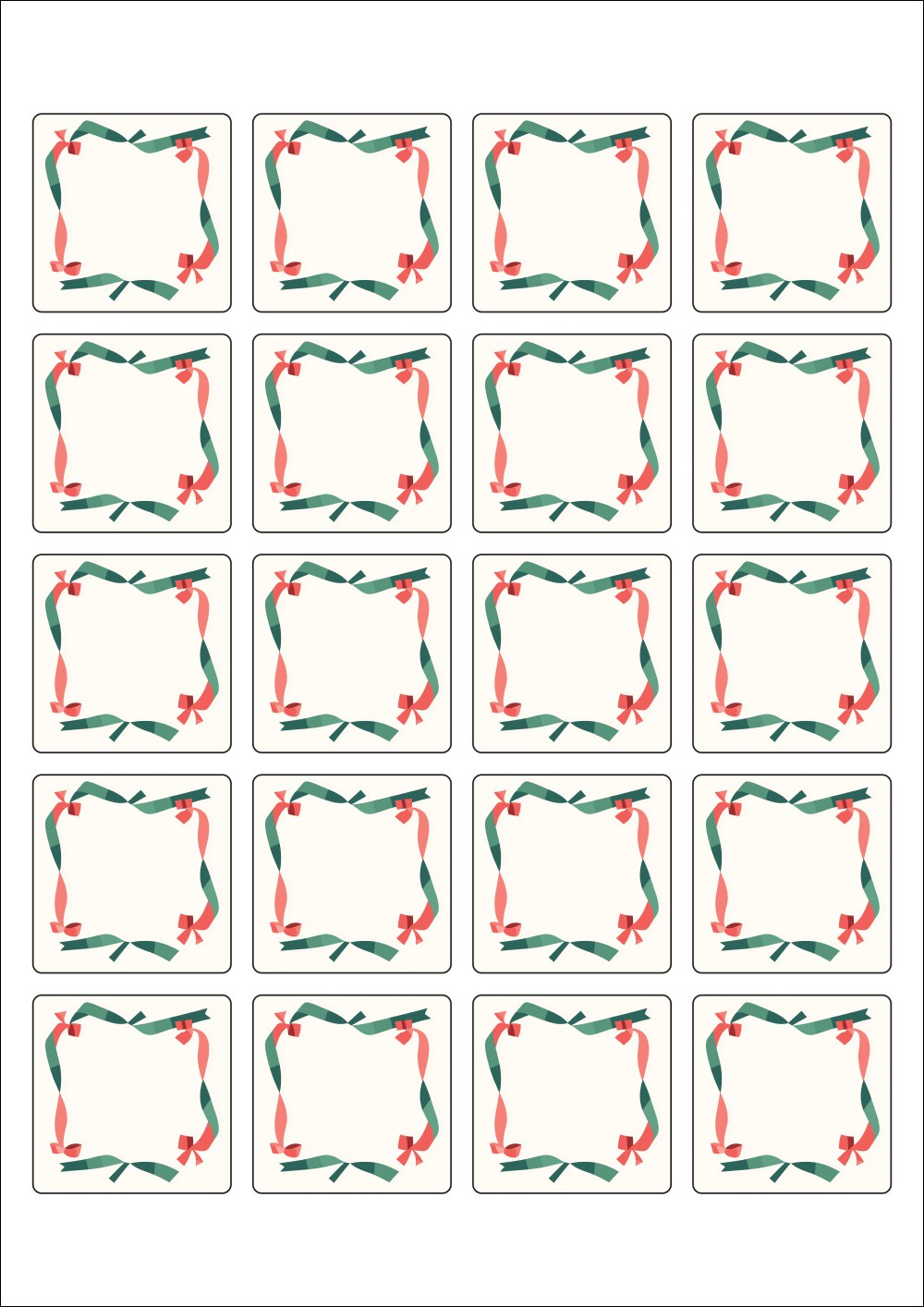 디자인된 A4 라벨지 출력용 라벨스티커, 규격코드: 420, 디자인코드: DA1454(리본 프레임1), 45 x 45 (mm)