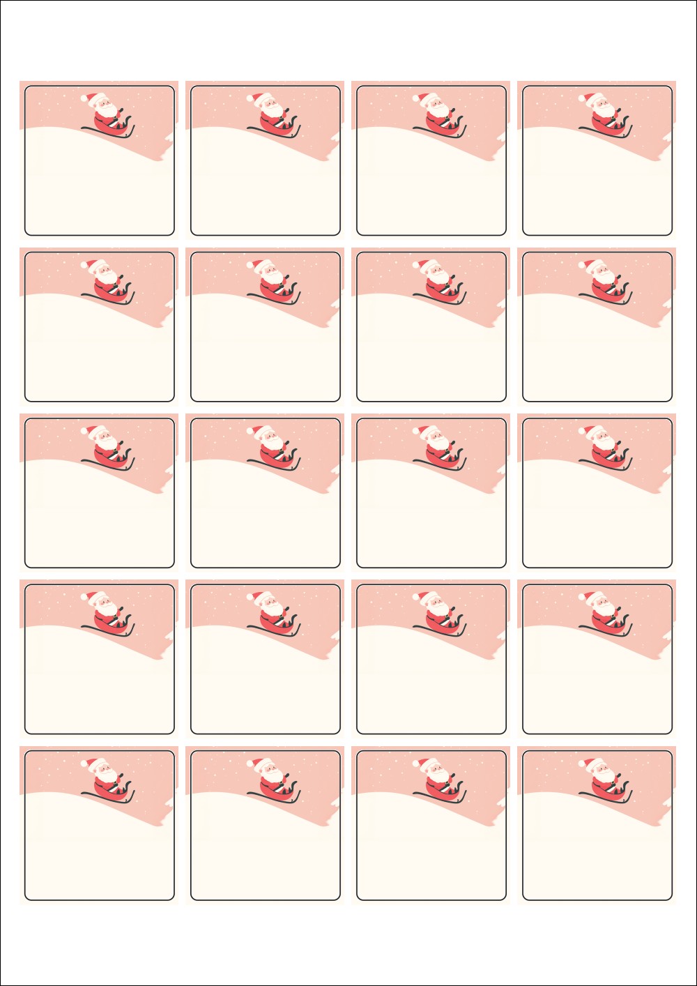 디자인된 A4 라벨지 출력용 라벨스티커, 규격코드: 420, 디자인코드: DA1482(산타 신난다), 45 x 45 (mm)