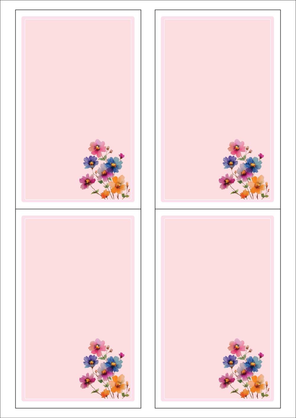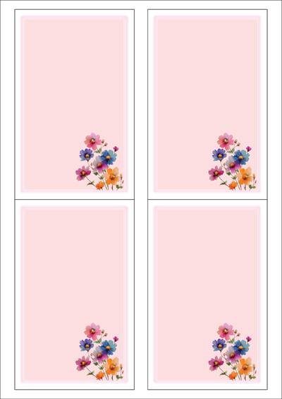 디자인된 A4 라벨지 출력용 라벨스티커, 규격코드: 422, 디자인코드: DA1451(꽃편지), 89 x 141.5 (mm)