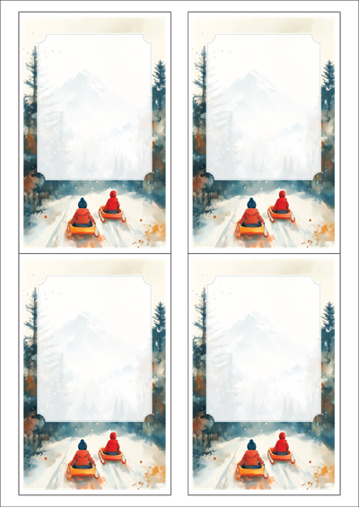 디자인된 A4 라벨지 출력용 라벨스티커, 규격코드: 422, 디자인코드: DA1495(겨울날의 동화, 그리고 즐거운 추억), 89 x 141.5 (mm)