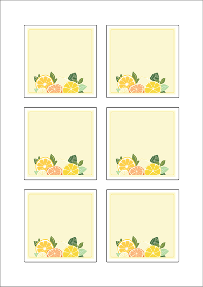 디자인된 A4 라벨지 출력용 라벨스티커, 규격코드: 423, 디자인코드: DA1416(아이셔~ 그래도 상큼해요), 75 x 75 (mm)
