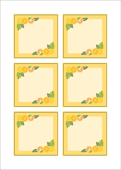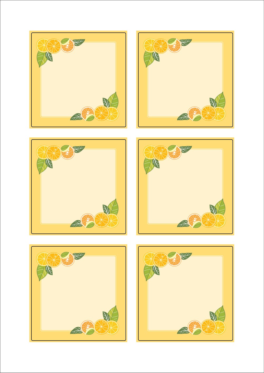 디자인된 A4 라벨지 출력용 라벨스티커, 규격코드: 423, 디자인코드: DA1417(상큼한 레몬 메세지), 75 x 75 (mm)