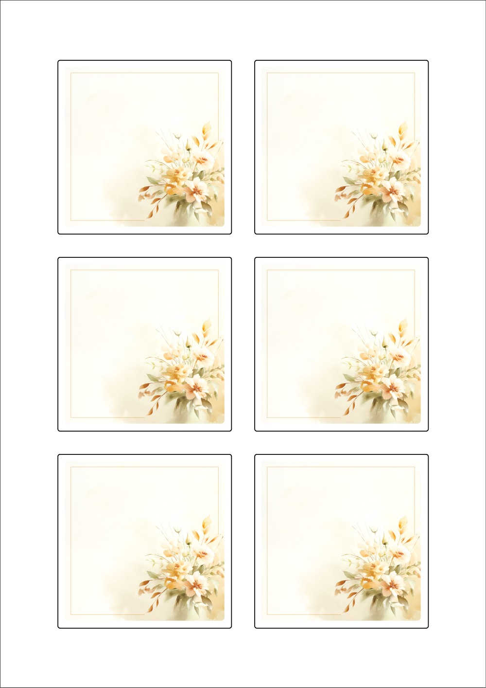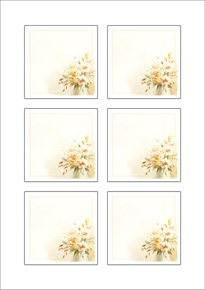 디자인된 A4 라벨지 출력용 라벨스티커, 규격코드: 423, 디자인코드: DA1422(감사의 메세지), 75 x 75 (mm)