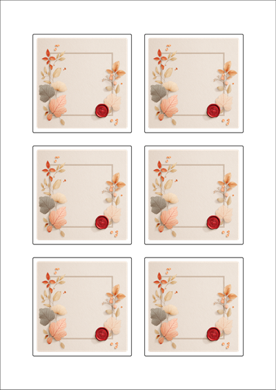 디자인된 A4 라벨지 출력용 라벨스티커, 규격코드: 423, 디자인코드: DA1429(가을날의 메세지2), 75 x 75 (mm)