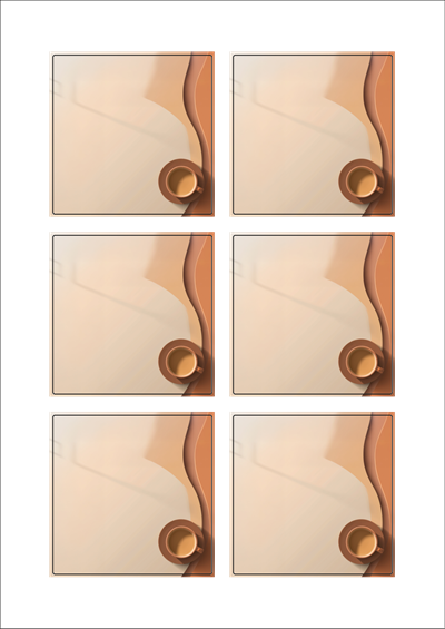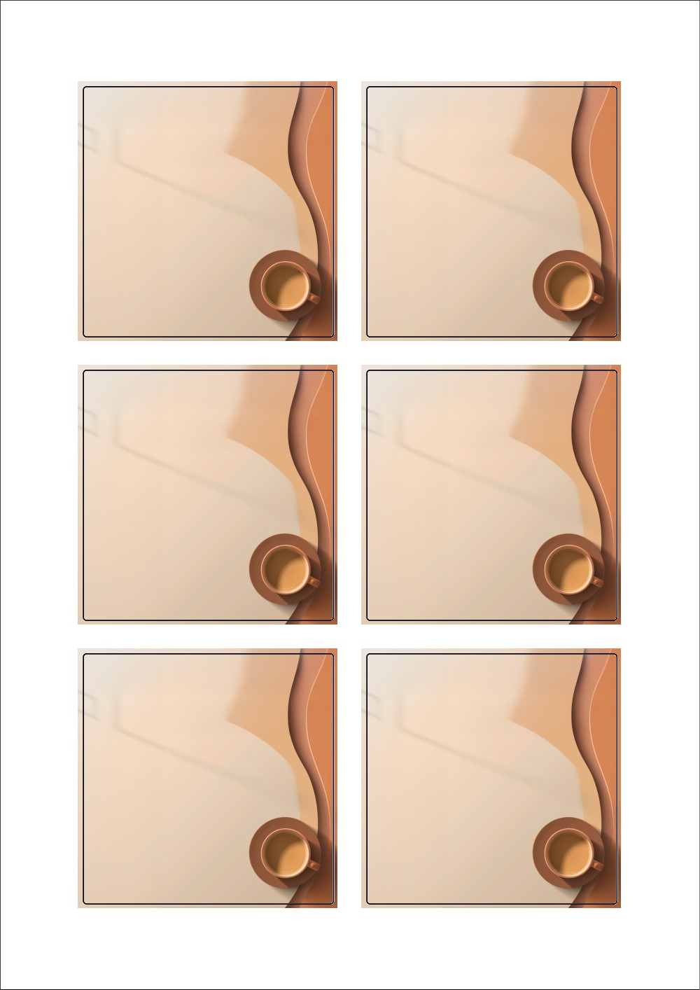 디자인된 A4 라벨지 출력용 라벨스티커, 규격코드: 423, 디자인코드: DA1441(커피가 있는 모던 카페), 75 x 75 (mm)