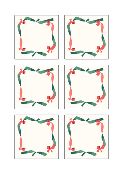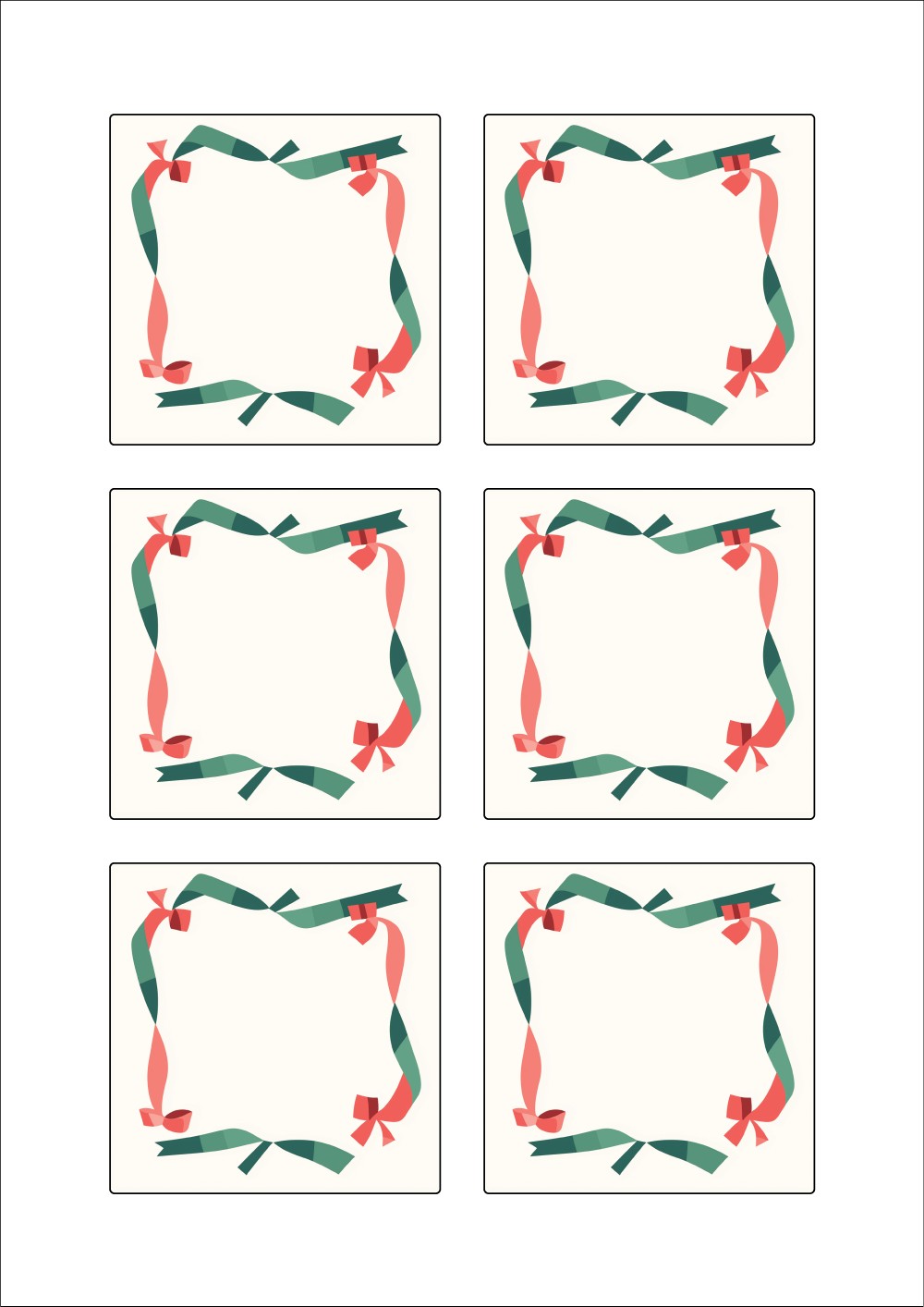 디자인된 A4 라벨지 출력용 라벨스티커, 규격코드: 423, 디자인코드: DA1454(리본 프레임1), 75 x 75 (mm)