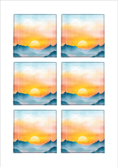 디자인된 A4 라벨지 출력용 라벨스티커, 규격코드: 423, 디자인코드: DA1530(출발 메세지), 75 x 75 (mm)