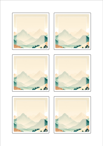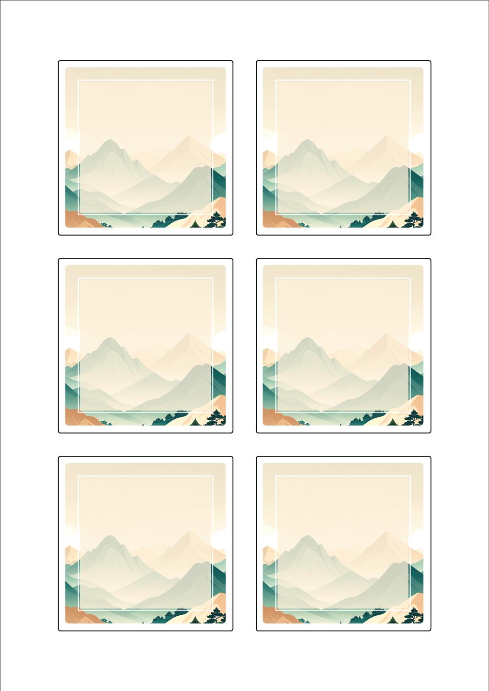 디자인된 A4 라벨지 출력용 라벨스티커, 규격코드: 423, 디자인코드: DA1565(자연의 물결1), 75 x 75 (mm)