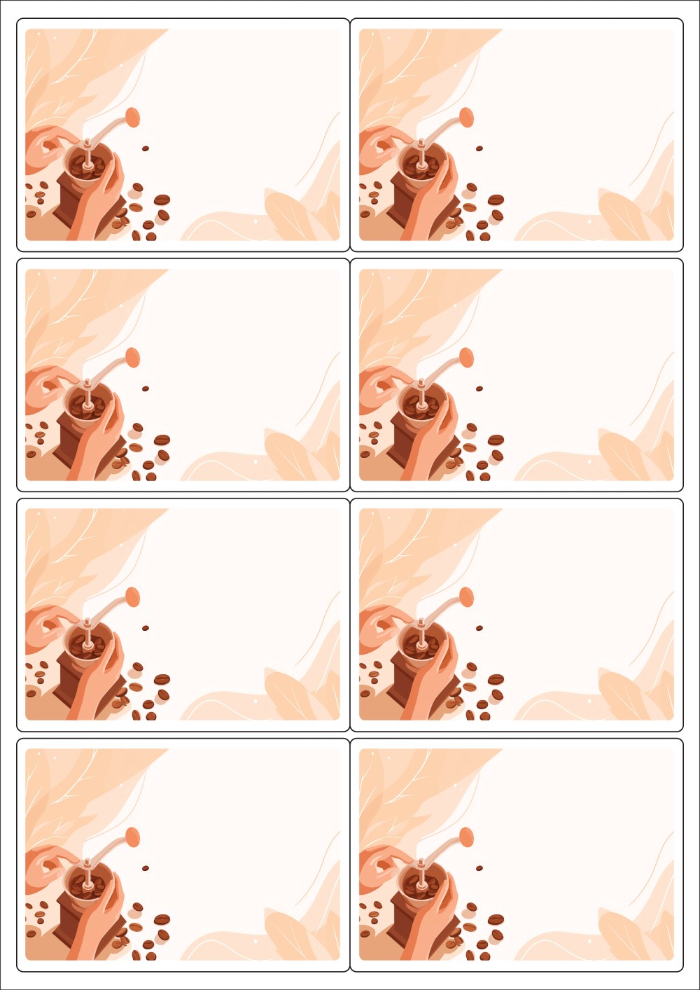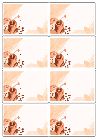 디자인된 A4 라벨지 출력용 라벨스티커, 규격코드: 424, 디자인코드: DA1411(향긋한 커피타임), 100 x 70 (mm)