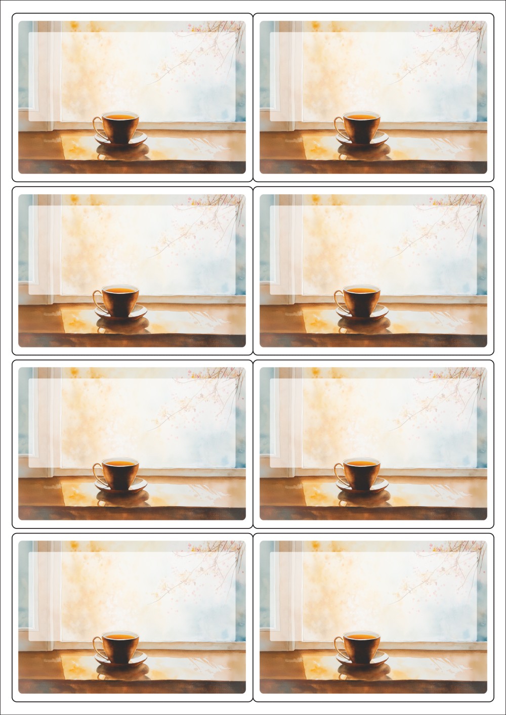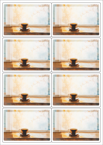 디자인된 A4 라벨지 출력용 라벨스티커, 규격코드: 424, 디자인코드: DA1425(가을날의 카페 창가에서), 100 x 70 (mm)