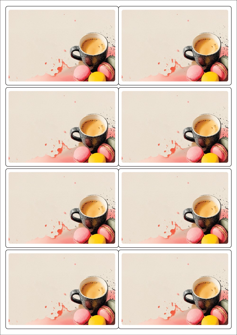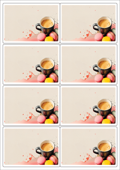 디자인된 A4 라벨지 출력용 라벨스티커, 규격코드: 424, 디자인코드: DA1445(차와 함께하는 즐거운 힐링타임), 100 x 70 (mm)