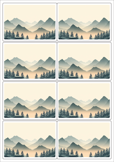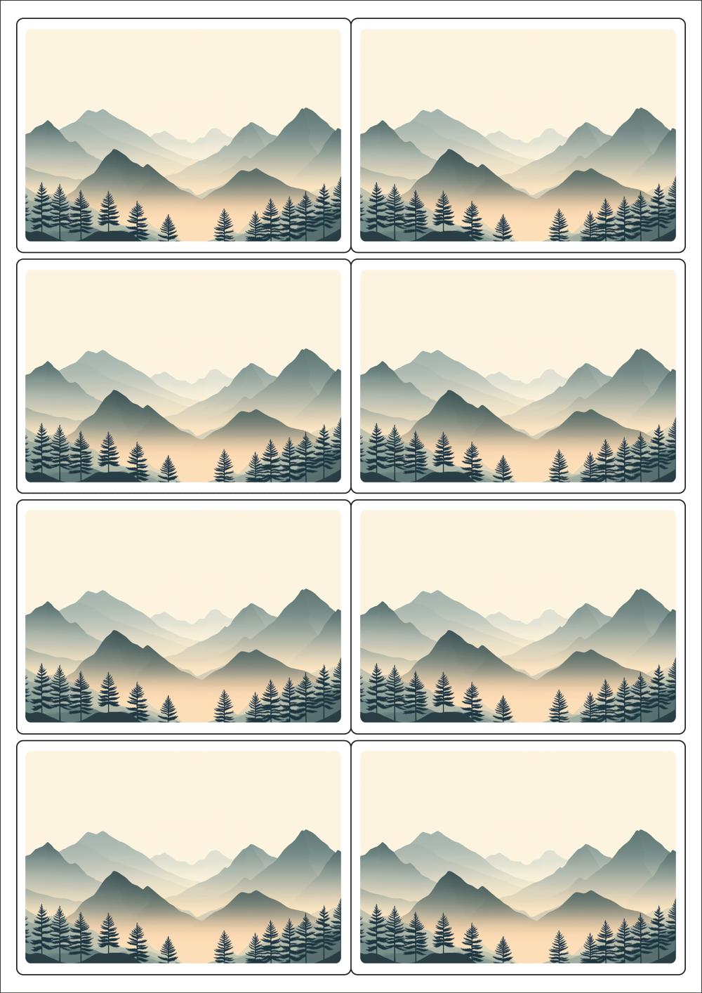 디자인된 A4 라벨지 출력용 라벨스티커, 규격코드: 424, 디자인코드: DA1572(고요한 아침의 숲), 100 x 70 (mm)
