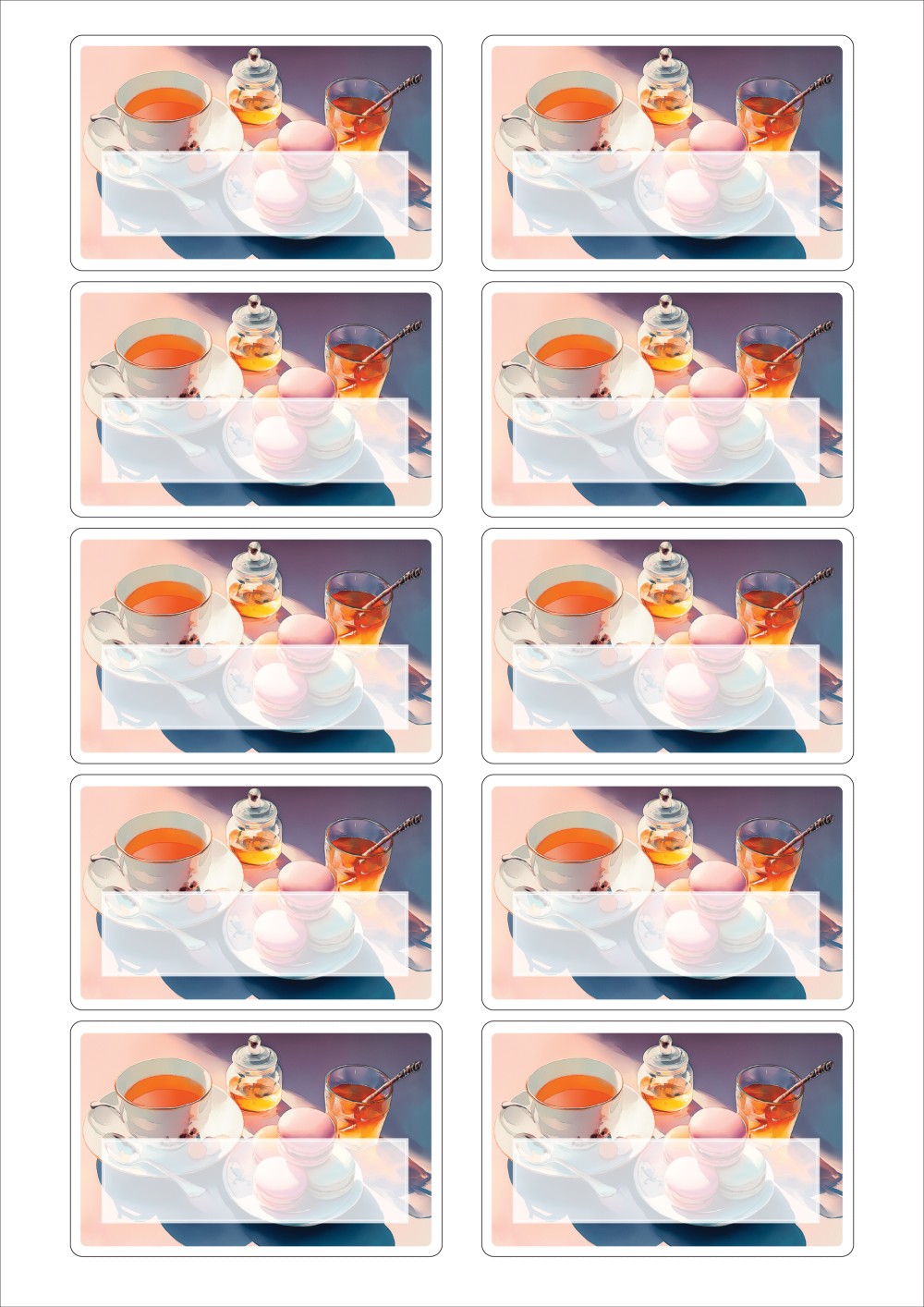 디자인된 A4 라벨지 출력용 라벨스티커, 규격코드: 425, 디자인코드: DA1430(브런치 타임), 84.5 x 53.5 (mm)