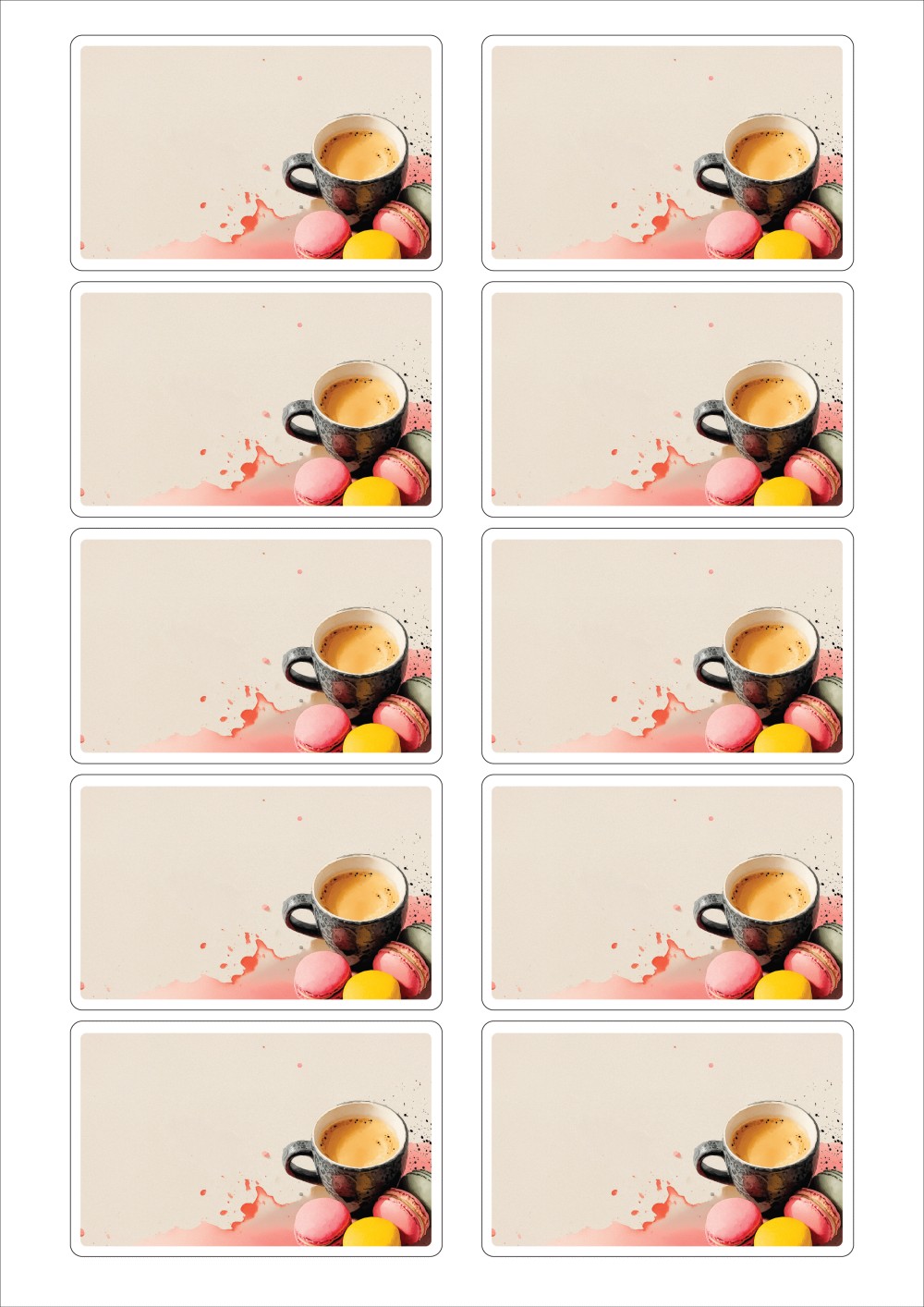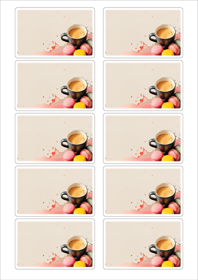 디자인된 A4 라벨지 출력용 라벨스티커, 규격코드: 425, 디자인코드: DA1445(차와 함께하는 즐거운 힐링타임), 84.5 x 53.5 (mm)