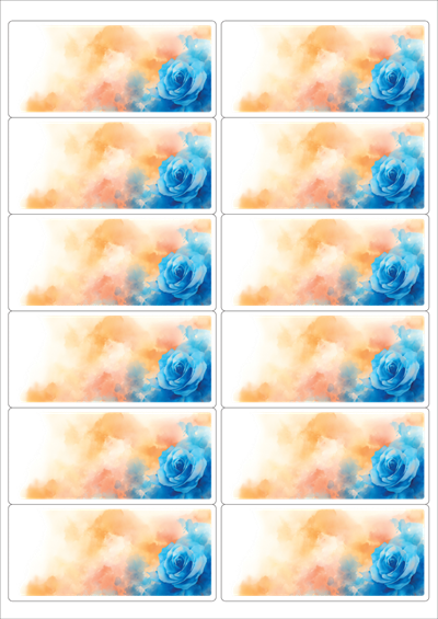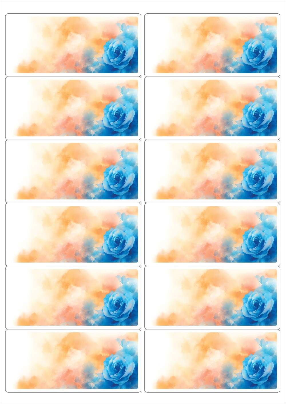 디자인된 A4 라벨지 출력용 라벨스티커, 규격코드: 426, 디자인코드: DA1410(감사의 파란 장미), 99.6 x 46.4 (mm)