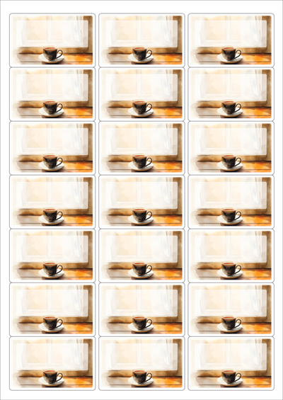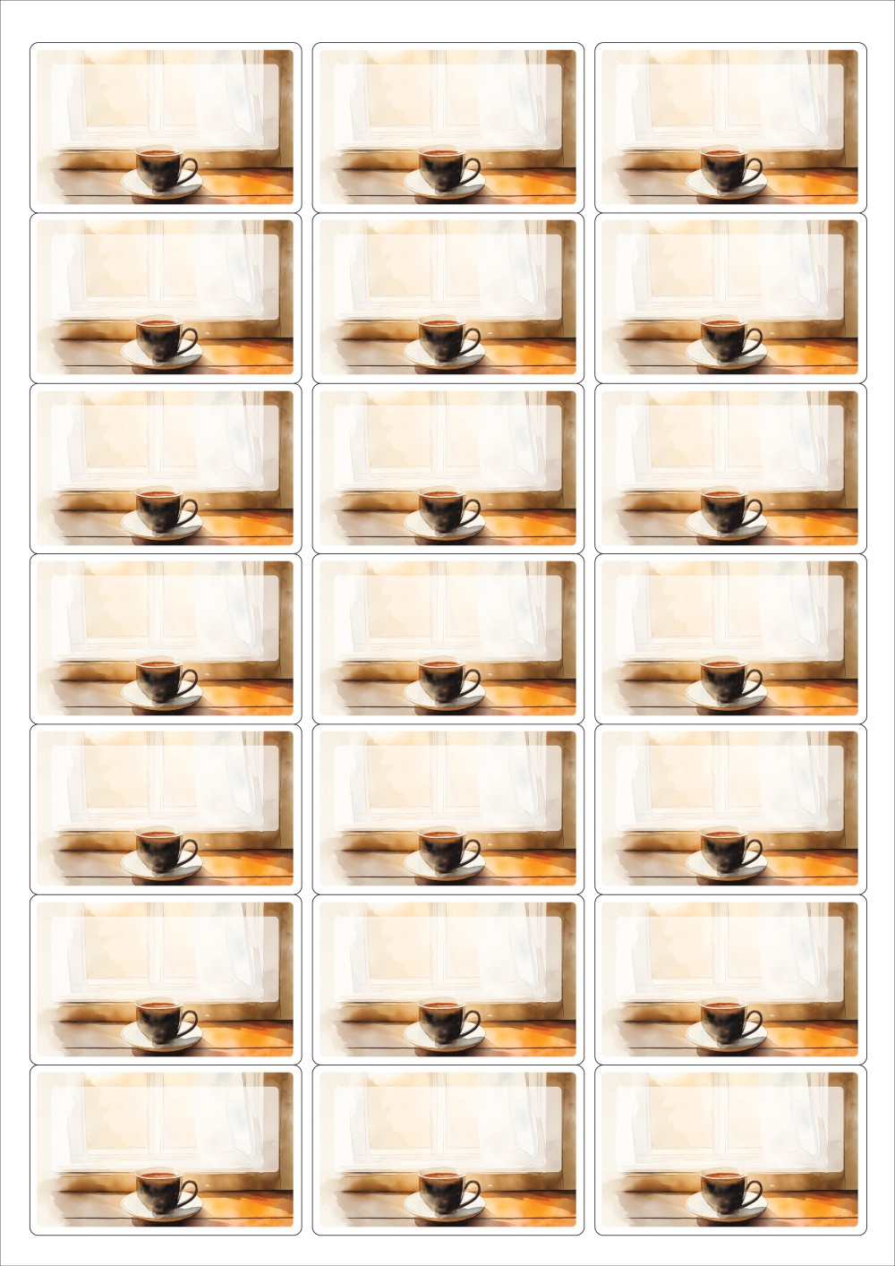 디자인된 A4 라벨지 출력용 라벨스티커, 규격코드: 437, 디자인코드: DA1424(따뜻한 차 한잔 하세요), 63.8 x 39.97 (mm)