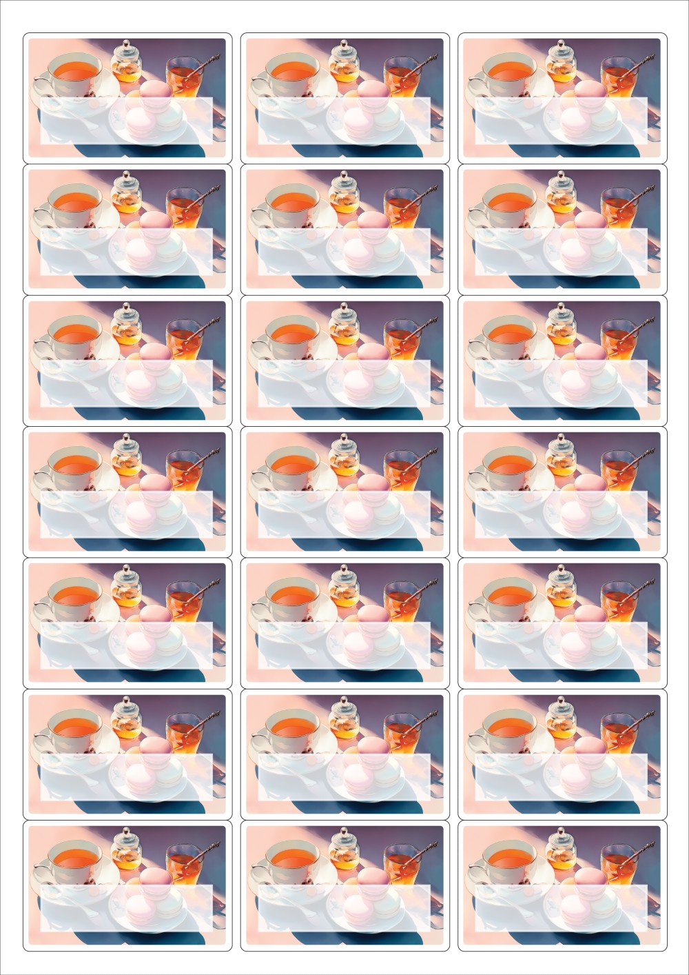 디자인된 A4 라벨지 출력용 라벨스티커, 규격코드: 437, 디자인코드: DA1430(브런치 타임), 63.8 x 39.97 (mm)
